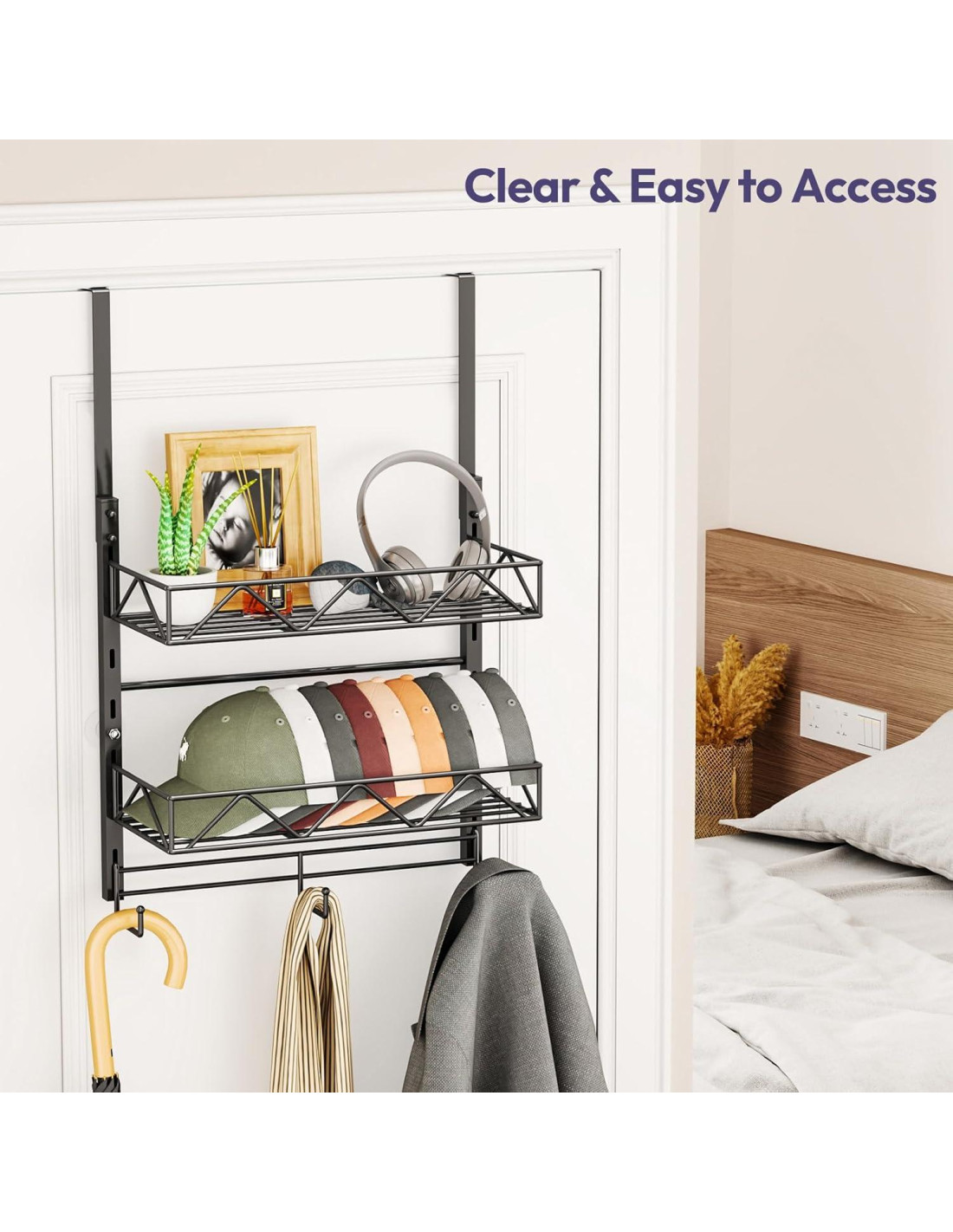 - [Alturas de Cesta Ajustables]: El estante para sombreros cuenta con cestas con alturas ajustables, lo que te permite personalizar el espacio entre cada nivel. La flexibilidad de este organizador de sombreros sobre la puerta asegura que puedas almacenar gorras de béisbol de varios tamaños sin complicaciones, haciendo que el soporte para gorras sea la solución perfecta para mantener tus accesorios organizados y fácilmente accesibles.