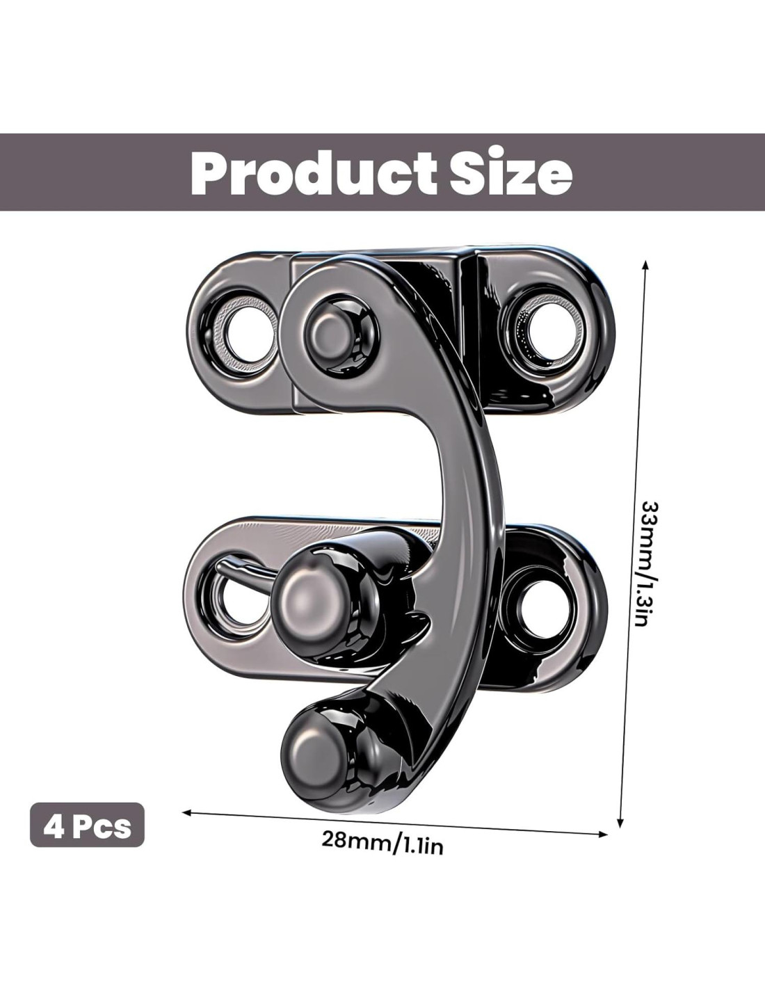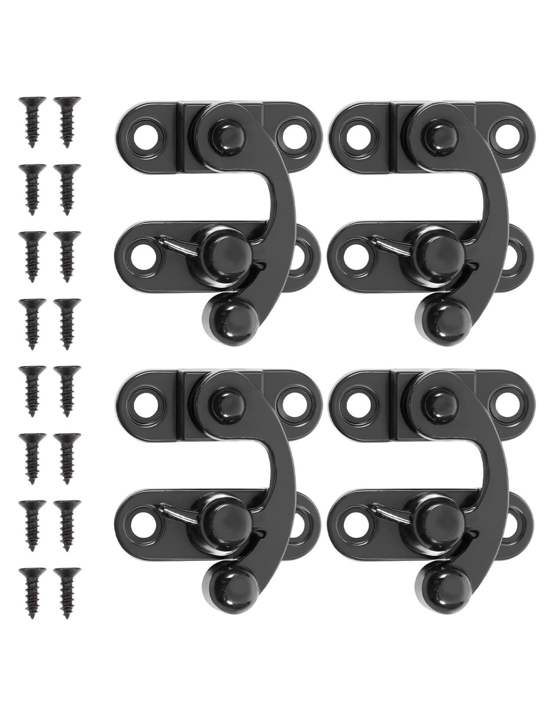 - [Exquisito y Práctico] : Pestillo de cierre de gancho negro con cierre de palanca, fácil de bloquear. Comúnmente utilizado en cajas de joyería, maletas, cajas de herramientas, cajas de almacenamiento de madera, puertas de armarios, casas de pájaros, casas de muñecas, etc