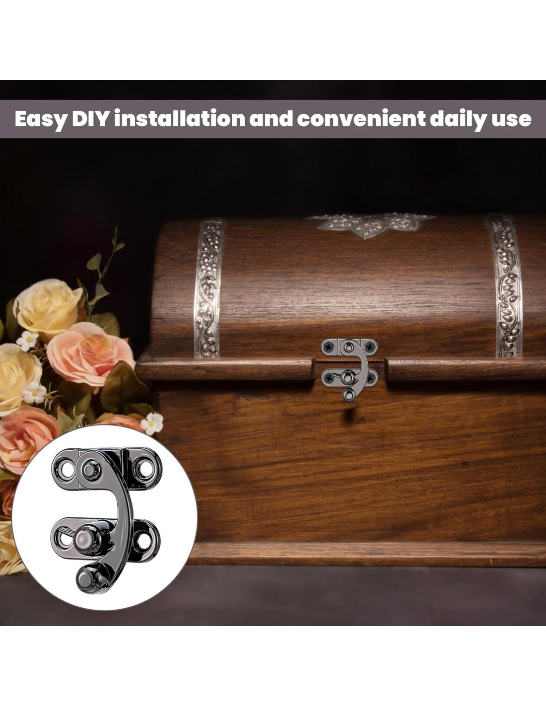 - [Pestillo Antiguo Clásico y Retro] : Cada paquete incluye tornillos de montaje para una fácil instalación de bricolaje, lo que lo hace conveniente para el uso diario. El diseño del cierre de gancho de palanca añade un toque de encanto vintage a las cajas de joyería, cofres de madera, cajas de regalo, y más