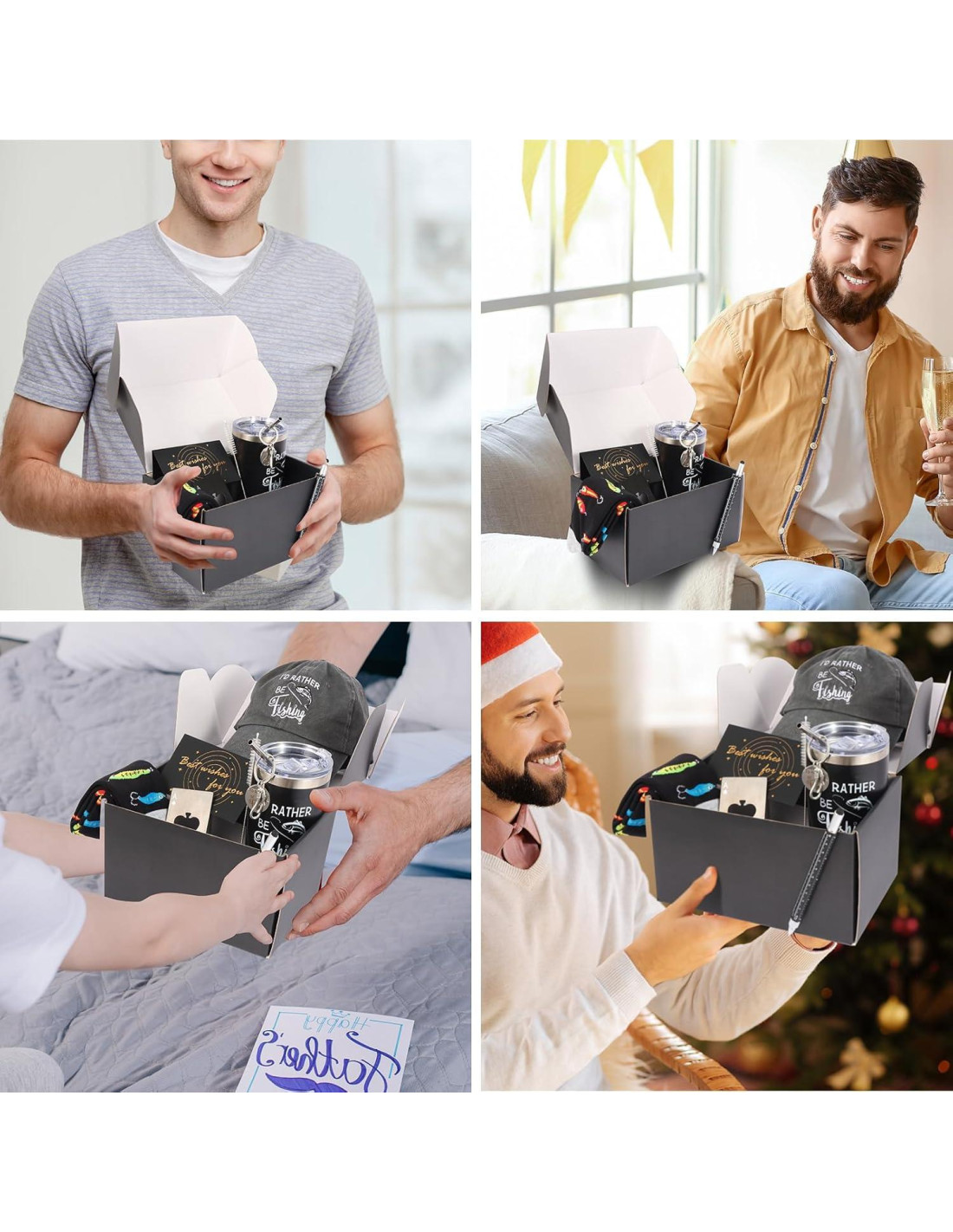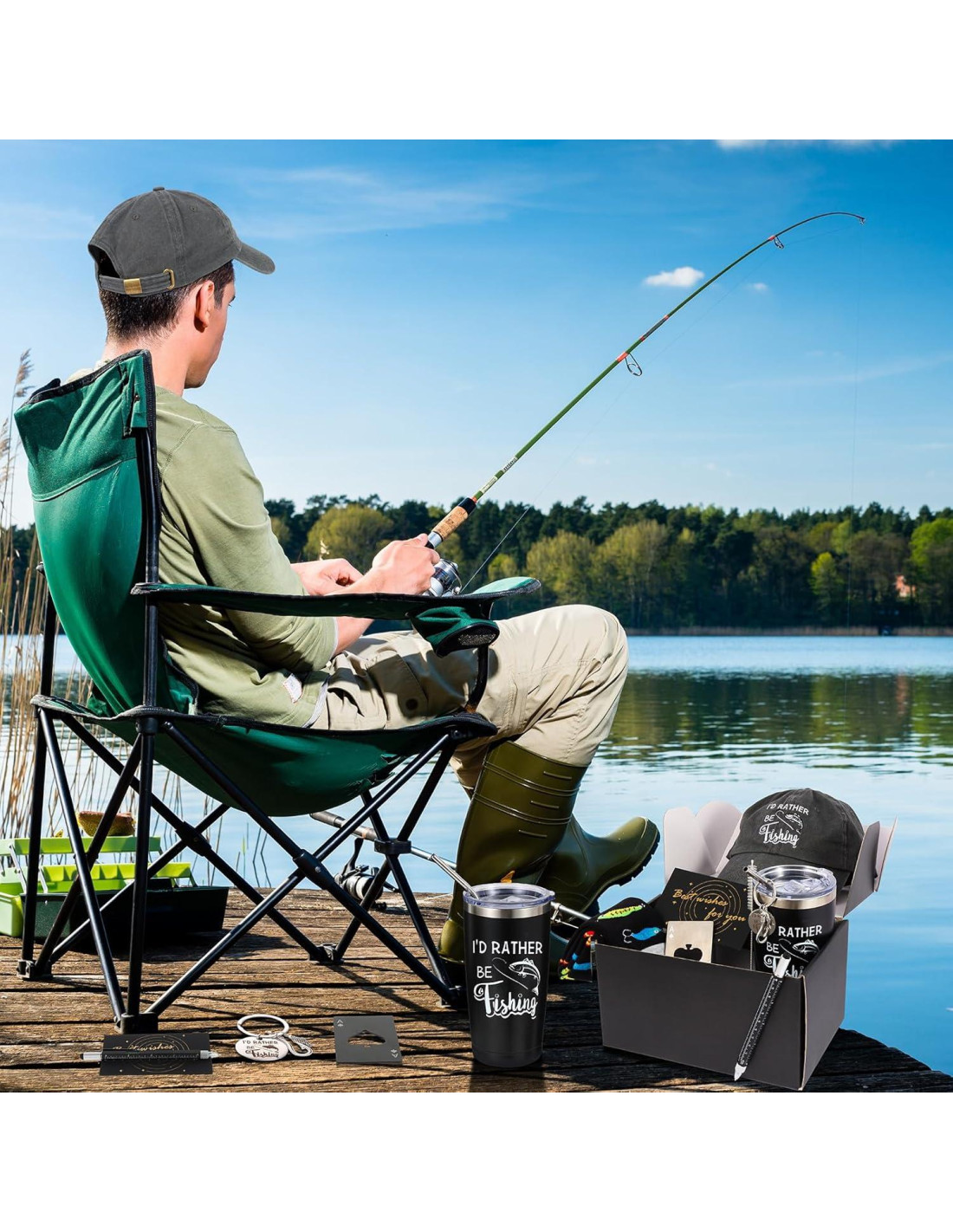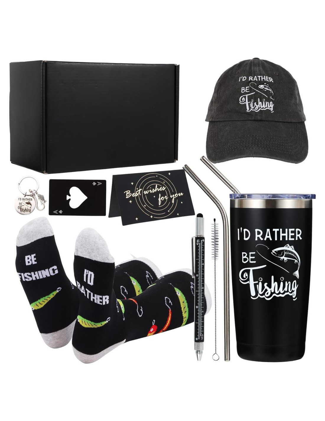- Juego de Regalo Exquisito y Delicado: los divertidos regalos de pesca contienen 1 vaso aislado, 1 par de calcetines largos, 1 gorra de béisbol, 1 llavero, 1 bolígrafo multifuncional, 1 tarjeta de felicitación, 1 abridor de botellas y 1 caja de regalo, que es un conjunto práctico y reflexivo que puede satisfacer tus diversas demandas, para expresar tu amor y gratitud al amante de la pesca.