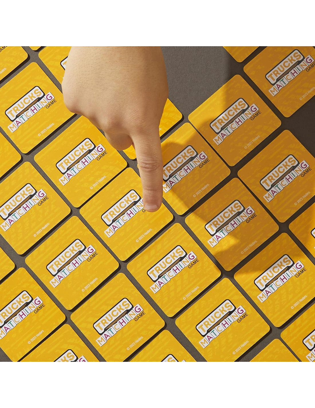 ¡Vroom, vroom! Los más pequeños encuentran y emparejan vehículos favoritos con este Juego de Emparejamiento de Camiones. Los niños pueden practicar habilidades de memoria al voltear y emparejar cartas que presentan todo tipo de camiones de construcción, camiones de entrega y más. Este juego de preescolar para niños de 3 años en adelante incluye 72 cartas de imagen resistentes e instrucciones. Cuando todas las cartas han sido emparejadas, cada jugador cuenta las cartas en su pila de puntuación. ¡El que tenga más cartas gana! Este juego de camiones para niños y niñas es un juego divertido para 1 o más jugadores. Es un regalo fantástico de cumpleaños o de vacaciones para los niños que aman los camiones. Hasbro Gaming y todas las marcas y logotipos relacionados son marcas registradas de Hasbro, Inc.