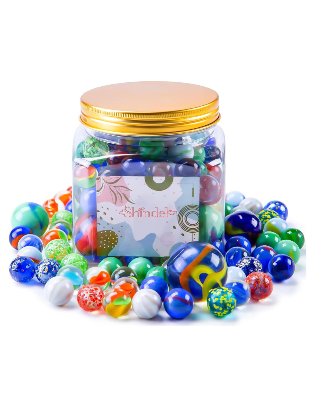 - Paquete de Gran Valor - 125PCS canicas de vidrio en total. 20 estilos diferentes, un festín visual total para tus ojos. Nuestras cuentas redondas vienen en 3 tamaños diferentes: 1 x Grande (1.4in/3.5cm de diámetro), 4 x Medianas (1in/2.5cm de diámetro, 4 diseños diferentes) y 120 x Pequeñas (0.6in/1.6cm de diámetro, 15 diseños diferentes), satisfaciendo diversas demandas de juego/colección/decoración.