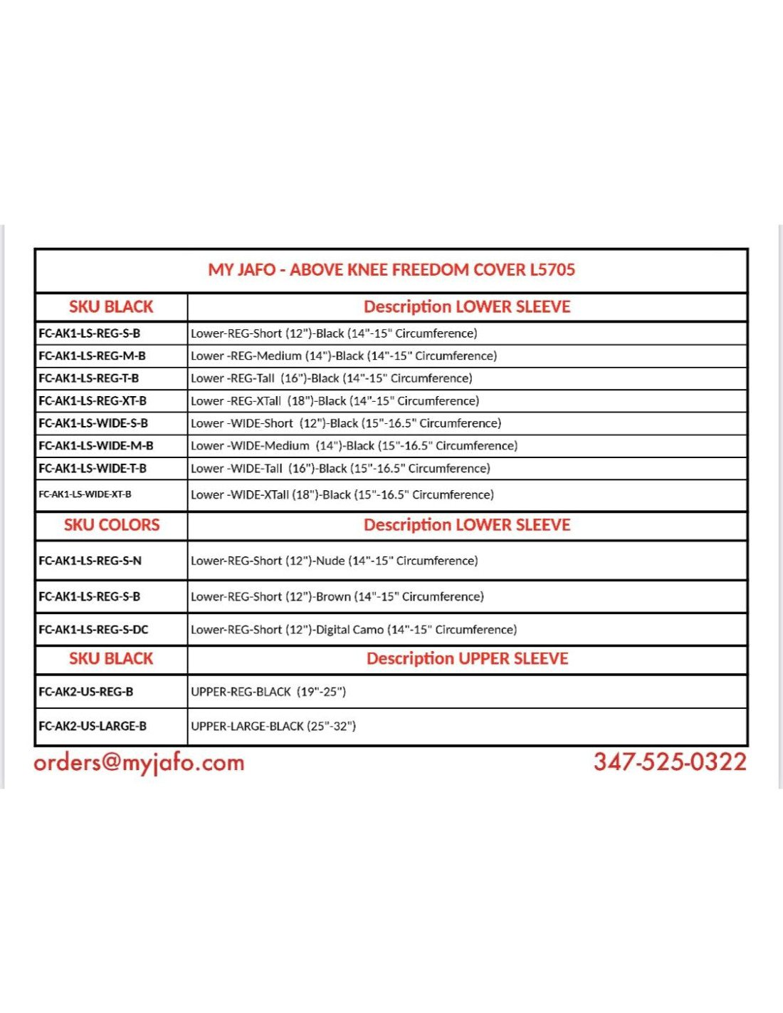 En lugar de comprar dos cubiertas con diferentes colores de neopreno, JAFO hizo la CUBIERTA DE LIBERTAD negra en todos los aspectos. A partir de ahí, agregamos nuestra funda de nylon patentada para el color que solicitaste aquí. En este caso, recibirás una cubierta de pierna prostética de neopreno negra con una funda de nylon deslizante Nude.