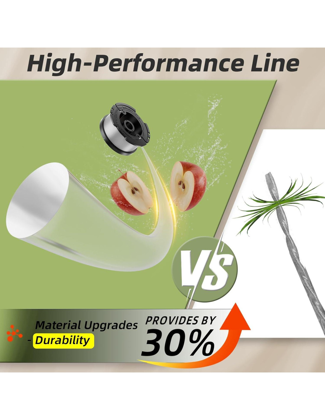 - Alimentación Automática: La Línea de Carrete de Desmalezadora de Alimentación Automática cuenta con un carrete de ABS de alta calidad y un hilo de nylon poliamida duradero, asegurando flexibilidad y una larga vida útil. El carrete de reemplazo de la desmalezadora utiliza fuerza centrífuga y aerodinámica para reducir la resistencia, logrando un corte rápido. Además, el sistema de alimentación automática para el cambio de bobina alivia el tedioso trabajo de enrollado manual.