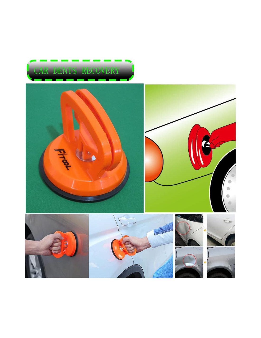 El Extractor de Cristales para Abolladuras: Utilizado para sacar abolladuras de automóviles, transportar materiales con superficies lisas e impermeables al aire como paredes de vidrio, ventanas, puertas, espejos, láminas, azulejos, plástico, etc. Mover algo tan resbaladizo y grande como un tragaluz, levantar paneles de pared de ducha, quitar suelo laminado para * Taza de succión de goma de 4.5 Pulgadas de diámetro (115mm) con mango de ABS duradero: goma de alta resistencia que produce una excepcional fuerza de la taza, succión operada por mango, facilitando el tirón y haciéndolo más exitoso. Apriete y sujete los 2 mangos para crear succión. Capacidad de Elevación Vertical: máx. 30KGS (66LBS); Capacidad de Elevación Horizontal: máx. 40KGS (88LBS). Dimensiones (LxWxH): 12.1x11.5x10.1cm y 4-1/2" (115mm) de diámetro de la taza de succión. Peso del producto: aprox.: 270g INSTRUCCIONES: El producto es para transportar materiales con superficies lisas e impermeables al aire como paredes de vidrio, ventanas, puertas, espejos, láminas, azulejos, plástico, etc. La superficie del objeto debe ser plana, limpia y suave. Antes de usar, asegúrese de que la superficie de succión esté limpia, y también la superficie del objeto que desea mover debe estar limpia (limpia, seca y * libre de aceite, suciedad, etc....). Presione firmemente la taza de succión sobre la superficie del objeto, luego apriete y sujete los 2 mangos para crear la fuerza de succión completa y mover el objeto. Después de completar la extracción, suelte y separe los 2 mangos; el mango y la almohadilla pueden ser liberados. Después de usar, guarde la taza en condiciones limpias y secas. Y preste atención a la humedad, protección solar. Sin agua, sin aceite y no poroso. Ideal para trabajos automotrices, eliminación de abolladuras metálicas. Mover algo tan resbaladizo y grande como un tragaluz, levantar paneles de pared de ducha. Transportar artículos pesados, incómodos y frágiles, etc... Transportar materiales con superficies lisas e impermeables al aire como paredes de vidrio, ventanas, puertas, espejos, láminas, azulejos, plástico, etc.