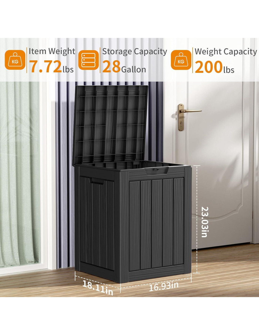 - Material resistente a la intemperie: Esta caja de almacenamiento está hecha de resina de polímero ecológica. Tiene mejor resistencia al agua y a los rayos UV que la madera tradicional. No hay necesidad de preocuparse por que se desvanezca y se caiga en los próximos años. Se requieren años de mantenimiento prácticamente nulo.