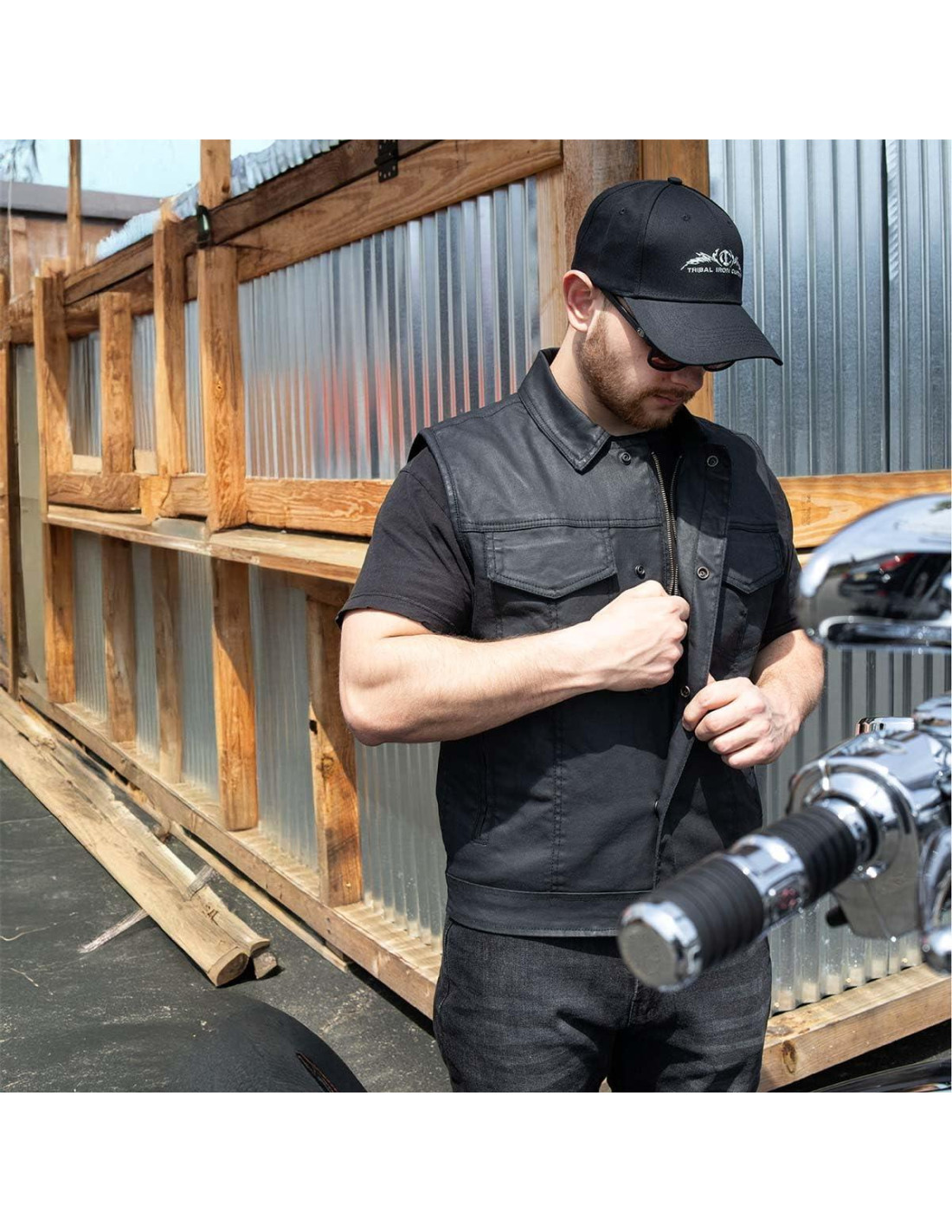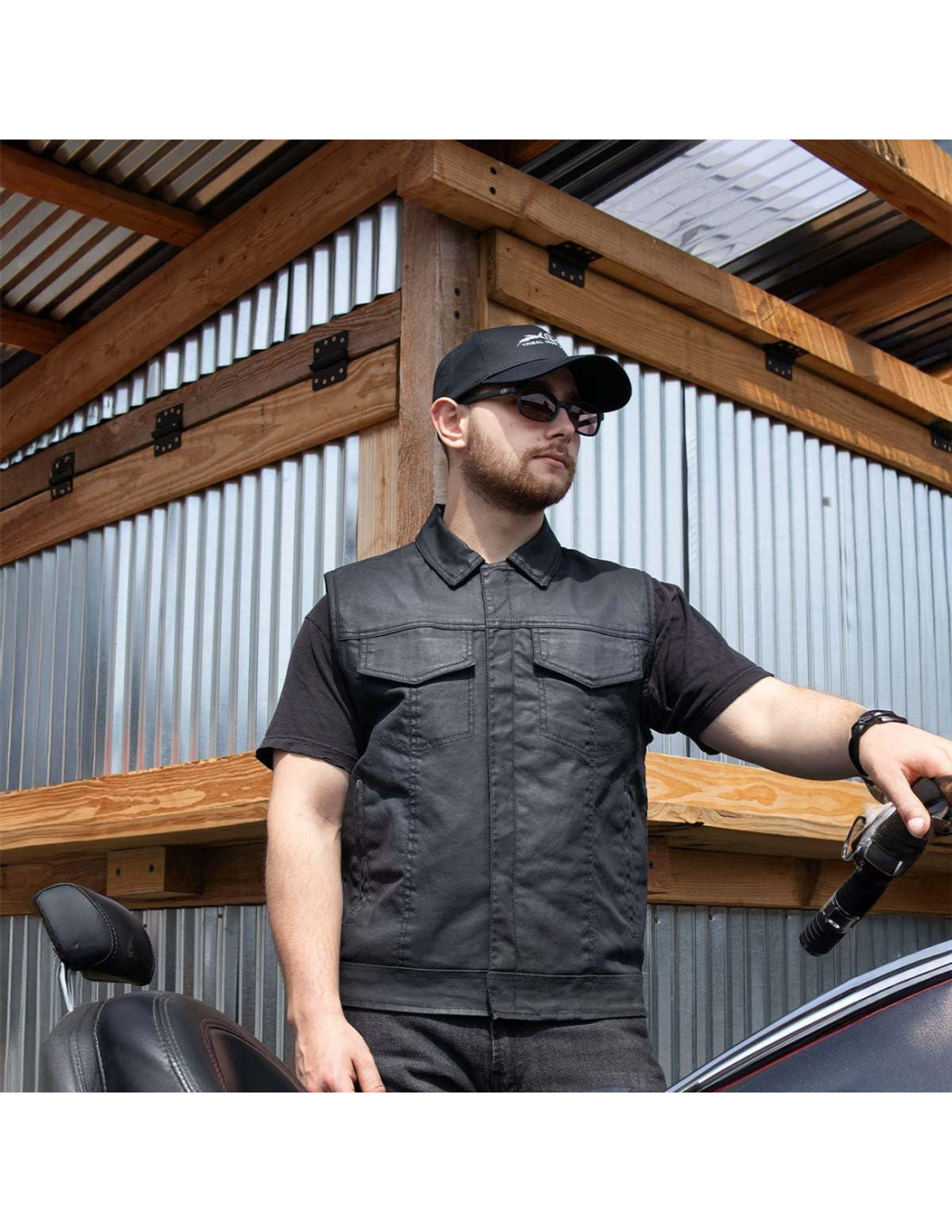 - Material y Diseño | Nuestro chaleco de mezclilla clásico está hecho de 14.5 oz 100 % mezclilla de algodón con una capa de acabado ceroso | Diseño Clásico con un Cuello Estilo Camisa