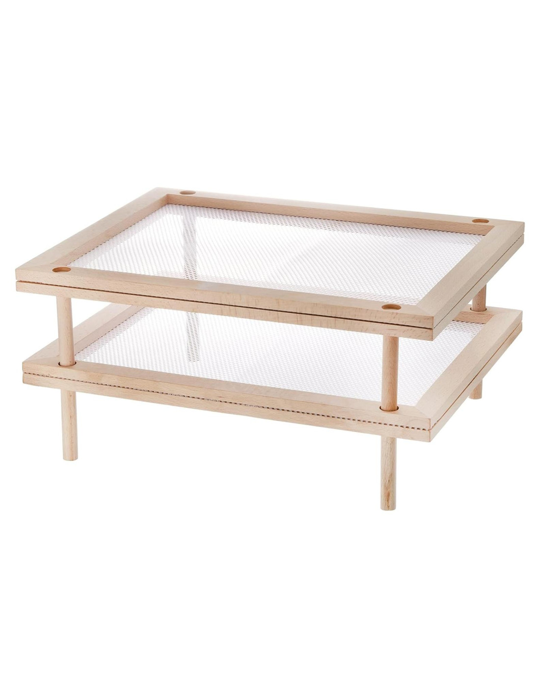 - Estos soportes para secar alimentos están hechos de madera de haya natural, robustos y duraderos. La red está hecha de plástico de grado alimenticio, seguro para el secado de alimentos.