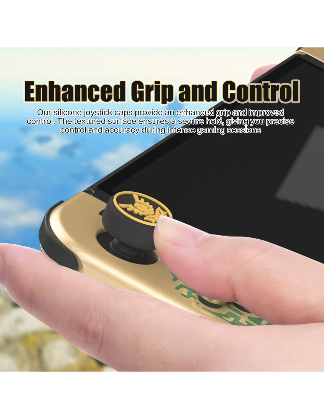- Estilo Personalizado: Destaca entre la multitud con nuestras tapas de silicona y tapas de dpad con tema de las Lágrimas del Reino. Estos accesorios diseñados a medida añaden un toque de elegancia y singularidad a tu controlador de juego. Muestra tu individualidad y haz una declaración con estas adiciones llamativas y elegantes.