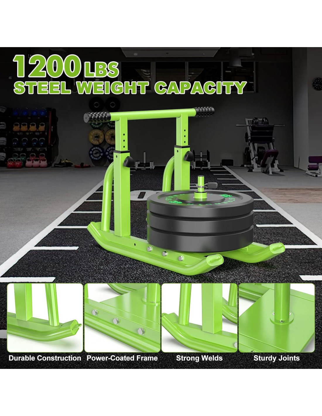 - Mangos de Empuje-Tiro Ajustables: El trineo de empuje mejorado cuenta con cinco alturas de mango ajustables, lo que permite una variedad de ejercicios de empuje y tirón en diferentes ángulos. Adecuado para diversas posturas de entrenamiento, el trineo de entrenamiento con peso también incluye dos vigas reforzadas para mayor durabilidad, lo que lo hace ideal para entrenamiento de alta intensidad