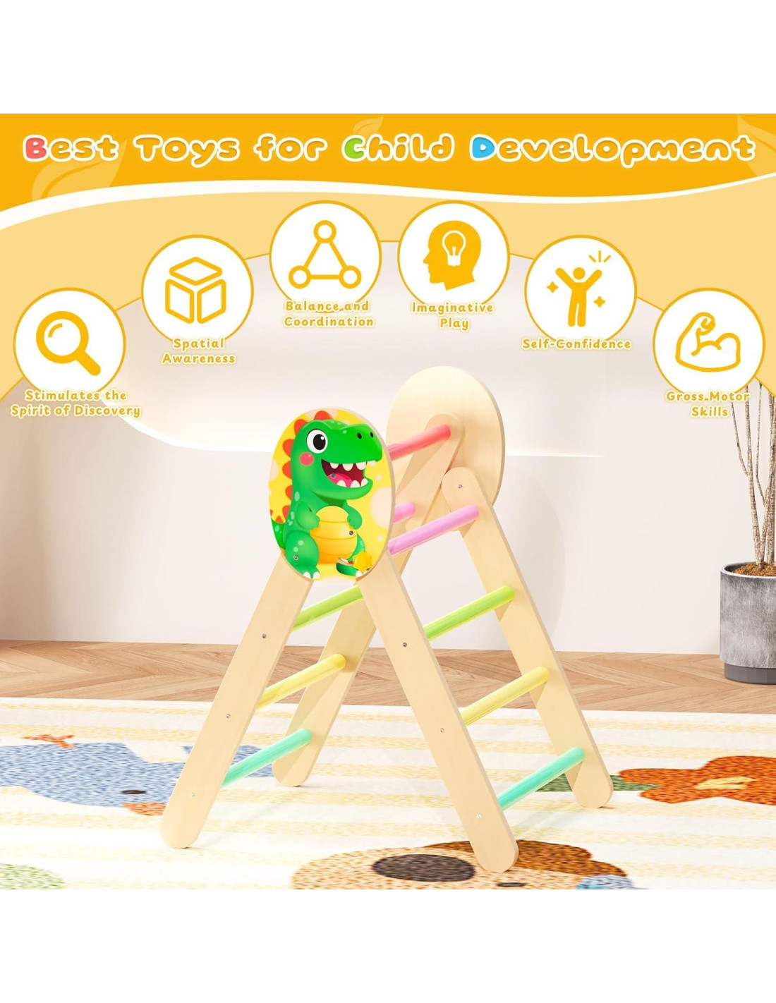 - Conjunto de Escalada Triángulo Pikler, Gimnasio de Escalada de Madera Montessori para Niños de 1-3 Años, Gimnasio Interior, Juguete Escalador Triángulo Dinosaurio