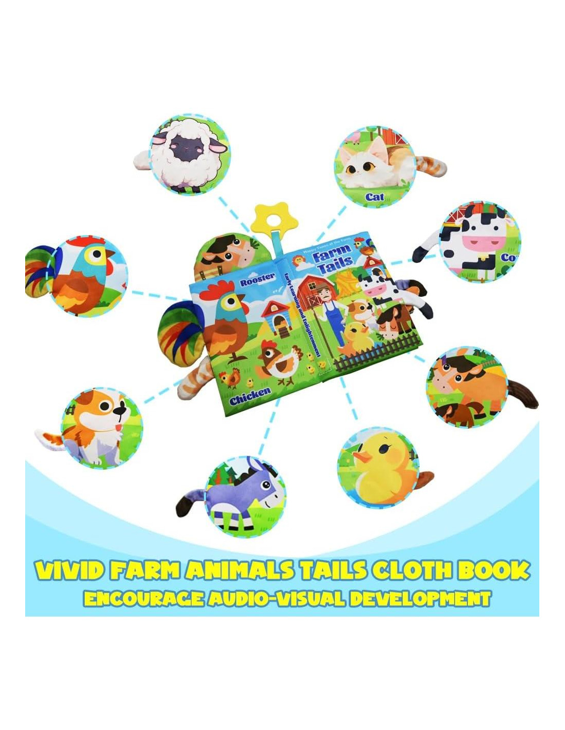 - Valor Educativo: El libro para bebés con colas inspirado en Montessori es tanto entretenido como educativo, mejorando las habilidades cognitivas de los niños pequeños. Con páginas interactivas que crujen y un caballo que chirría al presionarlo, enriquece el aprendizaje con sonido, ayudando en el reconocimiento y comprensión de los animales de granja.