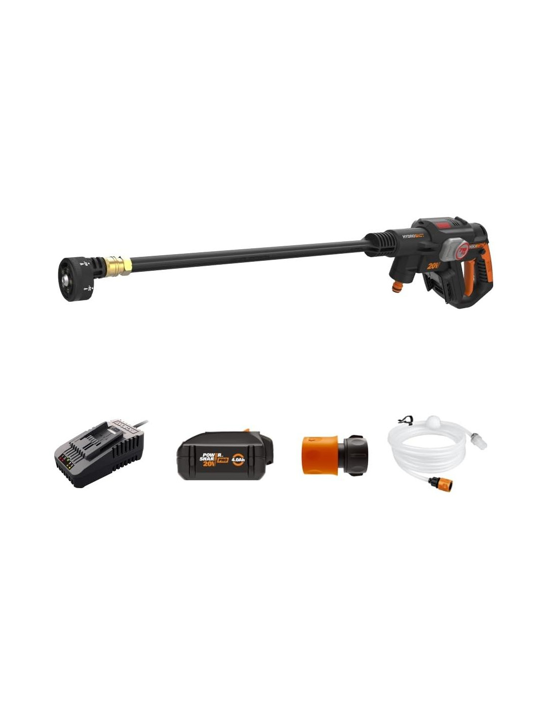 - INCLUYE: Lavadora de Presión Portátil 20V, Lanza de Limpieza con Boquilla 5-en-1, Manguera de Succión de 6 m, Adaptador de Conexión Rápida, Adaptador de Botella de Agua, (1) Batería Power Share PRO 20V 4.0Ah, (1) Cargador Rápido.