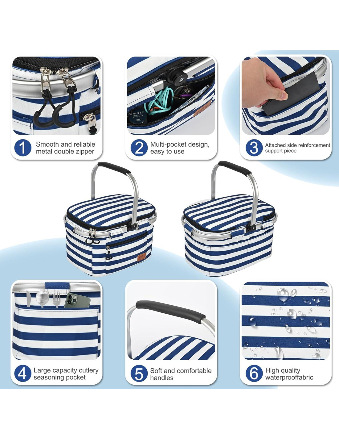 - CESTA DE COMPRAS MULTIFUNCIONAL - Esta cesta de transporte aislada es adecuada para muchos escenarios, como almuerzos, picnics, festivales de música, viajes a la playa, festivales de vacaciones, barbacoas, viajes de camping, viajes de pesca, compras en el mercado y más. Reutilizable, múltiples bolsillos y diseño ligero la convierten en una excelente opción.