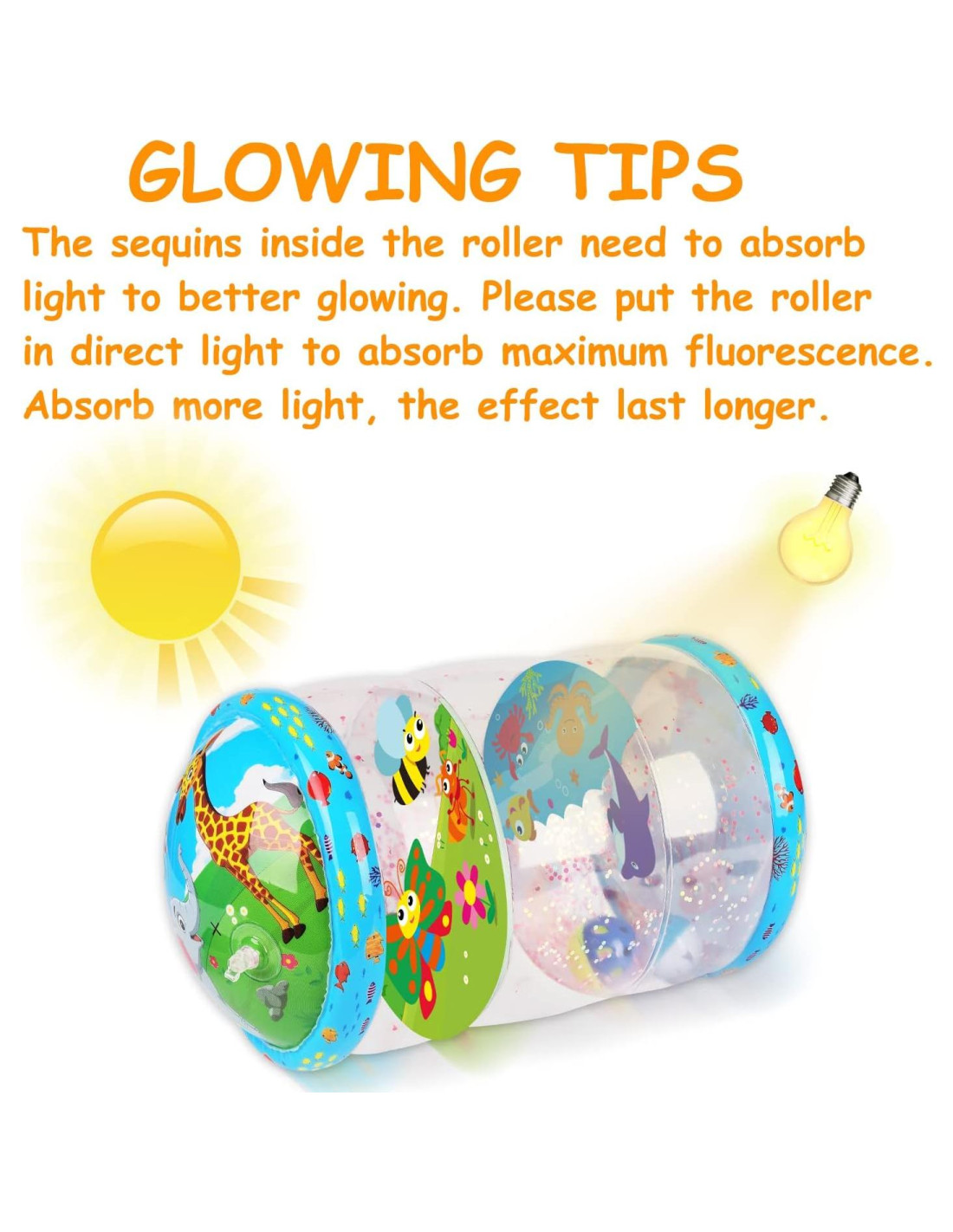 Los juguetes rodantes inflables jumbo para bebés de 6 a 12 meses vienen con diferentes animales lindos del mar y la tierra, dos pelotas sonoras y un brillante lentejuelas luminosas, es una herramienta práctica de aprendizaje y juego para bebés y bebés que aprenden a gatear, ayuda a promover sus habilidades motoras y la fuerza de las extremidades de manera natural. No tóxico, inflable y reciclable. Suficientemente duradero para muchos usos.