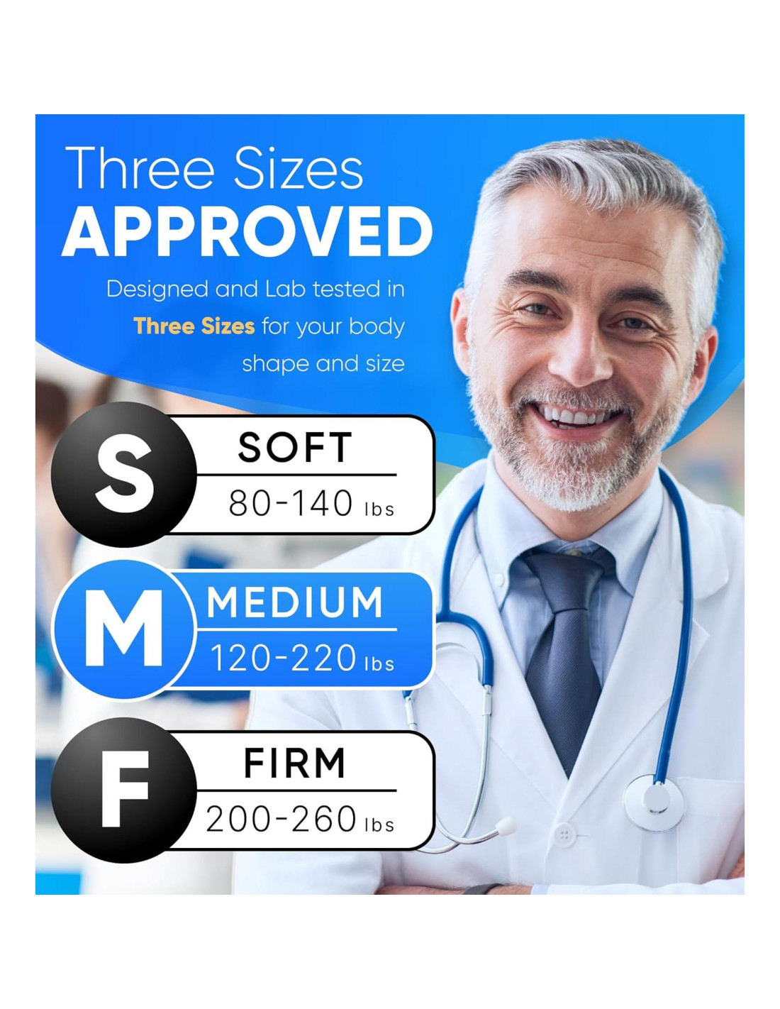 - Tipo de tela: Firmeza Media (54-100 kg): Soporta Peso del Usuario de 54-100 kg. Mide 18 pulgadas (45,72 cm) de lado a lado x 14 pulgadas (35,56 cm) de frente a atrás x 3 pulgadas (7,62 cm) de grosor