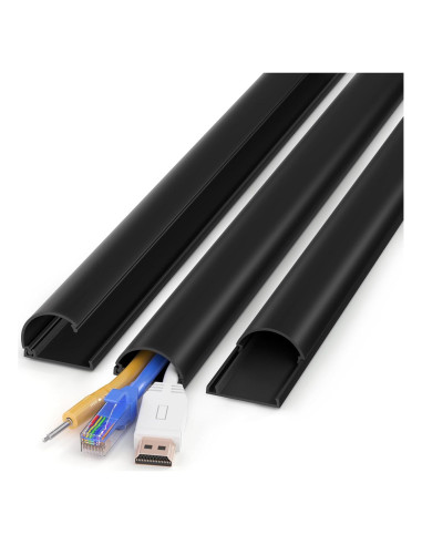 - Gran Tamaño para 2-4 Cables: Puede ocultar fácilmente 2 cables de extensión gruesos o 4 cables estándar, como una combinación de 1 cable de alimentación + 1 cable de altavoz + 1 cable HDMI + 1 cable Ethernet Cat6. Dimensiones de nuestra Cubierta de Cables para TV: 1.38in (3.5cm) (W) x 0.71in (1.8cm) (H), longitud de canal de 17in (43.18cm), 6 secciones, totalizando 102in (259.08cm)