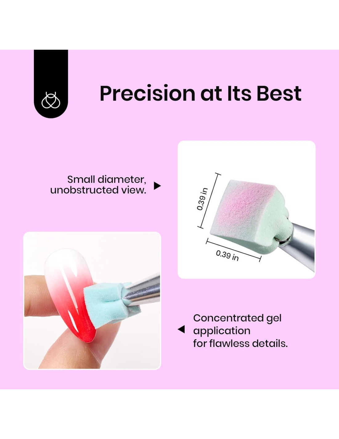 - Fácil de usar: 1. Presiona la parte superior para extender las garras. 2. Agarra la esponja y suelta para asegurarla. 3. Sumerge en el gel de color y da golpecitos sobre la uña para crear un efecto gradiente - permitiendo que cualquiera logre sin esfuerzo un estilo de uñas ombre profesional