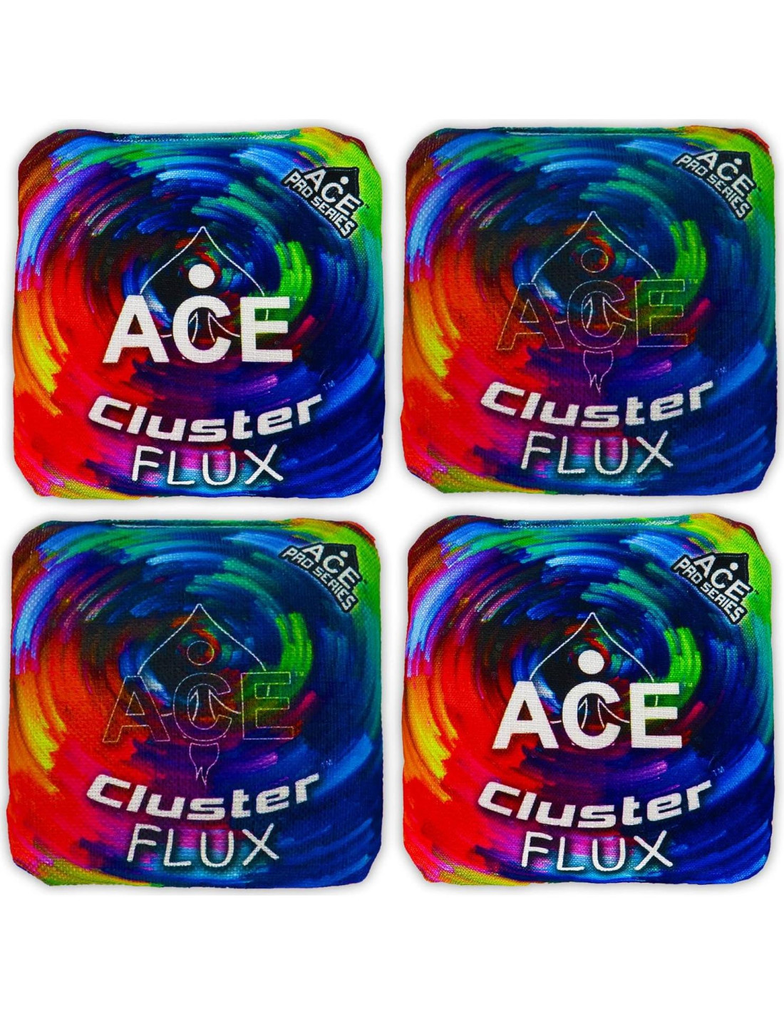 - ACE PRO STAMPED - Nuestras bolsas de cornhole profesionales de la serie Cluster Flux están ACE Pro Stamped representando la más alta calidad de bolsas de cornhole en el mercado.
