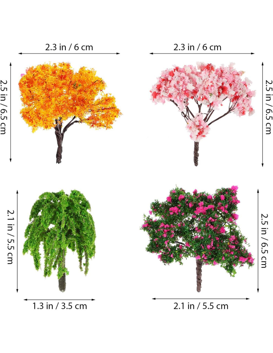 - Proyectos: Ya sea que estés trabajando en una mesa de arena, jardín de hadas o paisaje de tren modelo, estos árboles miniatura añaden un toque de realismo y creatividad, haciendo que tus proyectos se destaquen