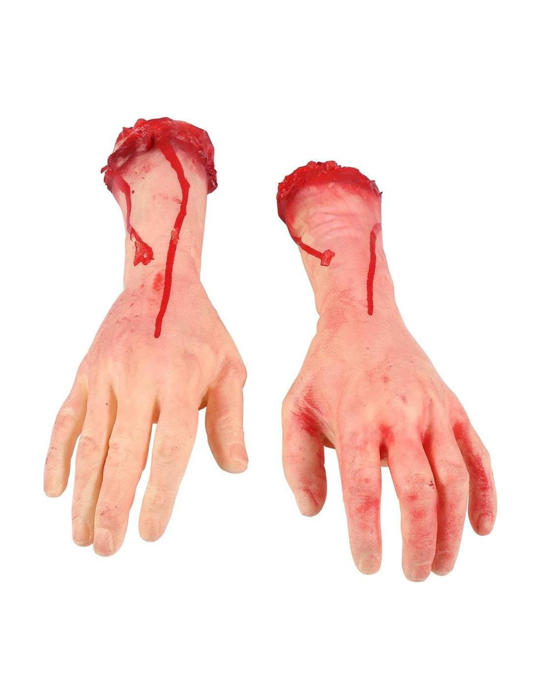 - Paquete Incluido: 1 Par de Brazo Cortado de Halloween (una mano izquierda y una mano derecha) decoraciones para casa embrujada de Halloween, decoraciones de jardín sangrientas de Halloween.
