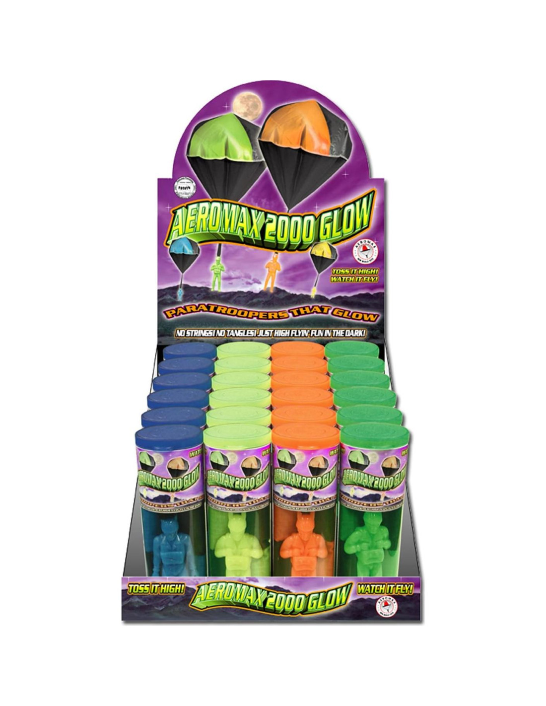 SIN CORDONES y SIN ENREDOS es de lo que se trata este juguete paracaídas que brilla en la oscuridad. Los MEJORES MATERIALES son los que le dan a este paracaídas su GRAN RENDIMIENTO. Simplemente lánzalo alto y míralo volar... una y otra vez. Los productos de calidad Aeromax son grandes regalos para niñas y niños. Este artículo ha sido probado para cumplir con los estándares de seguridad de EE. UU. para productos infantiles.