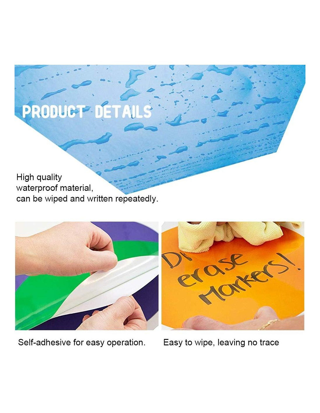 Se puede borrar con un bolígrafo de borrado en seco y un marcador de pizarra blanca, no es adecuado para bolígrafo, marcador permanente y pluma fuente. Hecho de vinilo de alta calidad, material duradero y seguro que no es dañino para los niños. Excelente para uso al aire libre y tiene las características de ser impermeable y resistente a la corrosión. Autoadhesivo para una fácil operación. No deja manchas en la superficie. Para brindarte una experiencia de limpieza sin esfuerzo. Los círculos de borrado en seco HOXHA son perfectos para tu proceso de enseñanza y capacitación, colócalos en paredes o escritorios, ¡tus estudiantes adorarán usarlos para practicar la escritura de palabras de vista, resolver problemas matemáticos o incluso tomar notas durante una lección de lectura! También son adecuados para ventanas, puertas, muebles, electrodomésticos, laptops, gabinetes y casi cualquier superficie plana y lisa para notas comunes.