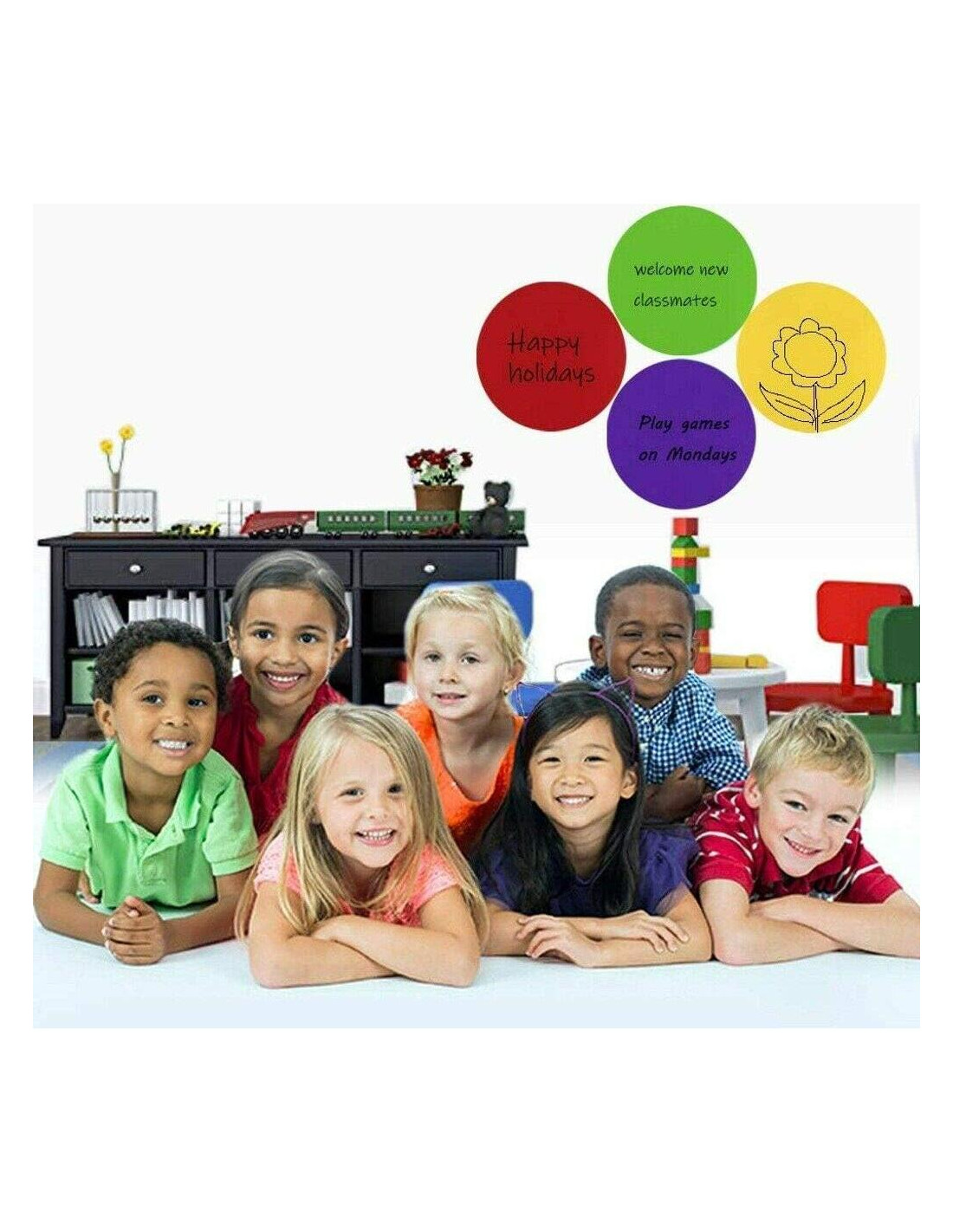 - MÁS DIVERSIÓN E INTERÉS EN TU AULA: Una interpretación moderna del clásico pizarrón, estos puntos de borrado en seco crean un gran espacio reutilizable para que escribas y dibujes. Haz que tu espacio de enseñanza sea más divertido y creativo con estos círculos de vinilo de borrado en seco brillantes y coloridos.