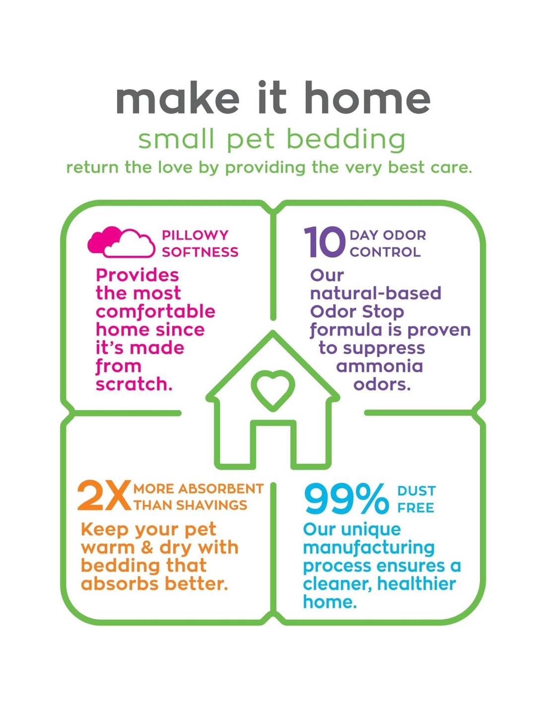 - Control excepcional de olores: Ideal para usar como lecho para hámsters, forro de hábitat para cobayos o lecho para conejos, nuestra fórmula de control de olores segura para mascotas suprime los olores de amoníaco hasta por 10 días