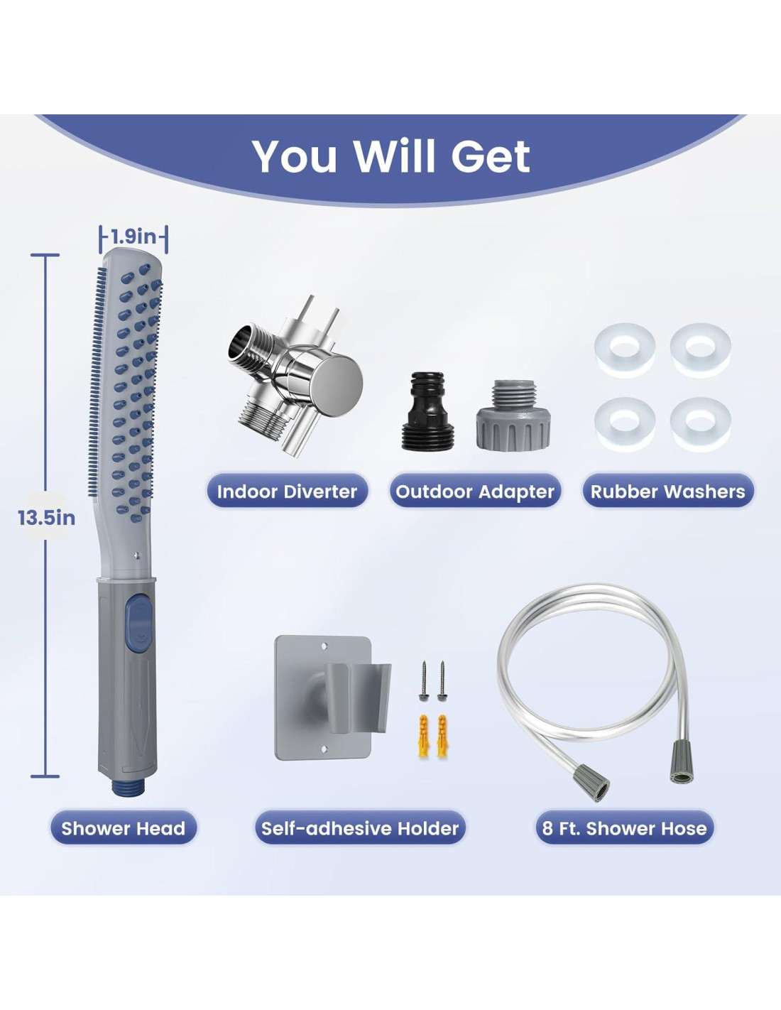 - [Accesorio de Lavado para Ducha] La varita de ducha Shandus con desviador de metal se puede conectar fácilmente a brazos de ducha estándar. Cuando se usa al aire libre, utiliza el adaptador exterior incluido para conectarlo a la manguera de jardín