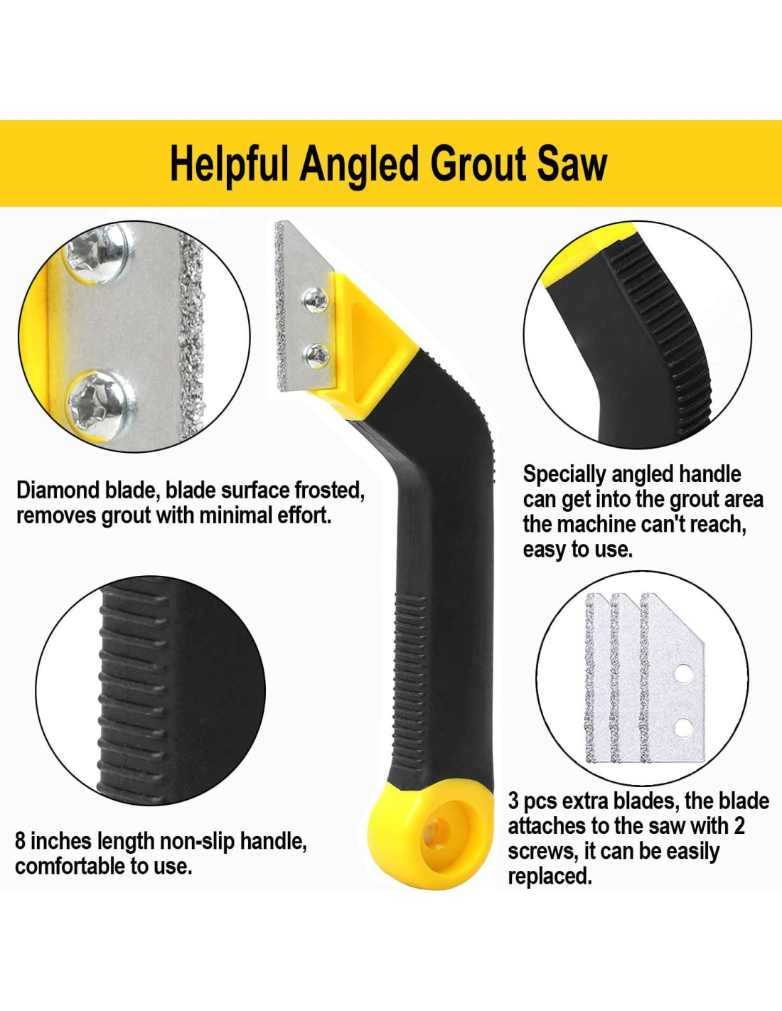 - [Diseño Útil] La herramienta de rastrillo de lechada de azulejos tiene una cabeza en ángulo para eliminar lechada de los lugares de difícil acceso que la máquina no puede alcanzar, fácil de usar. Las cuchillas de sierra de lechada tienen un grosor de 1 mm, funcionan muy bien en hendiduras profundas y limpieza de detalles. Diseño ergonómico de mango antideslizante para un agarre cómodo, permitiéndote trabajar durante mucho tiempo. El gancho en la cola del mango para un fácil almacenamiento.