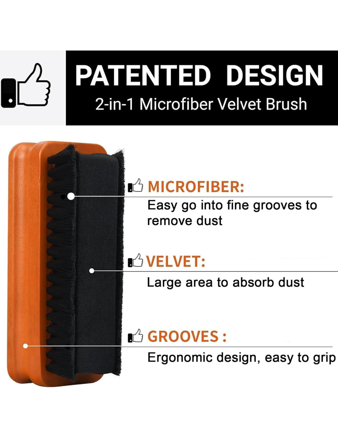 - Diseño Patentado - El cepillo de limpieza de discos está hecho con una combinación de terciopelo y microfibra que está diseñado para una limpieza eficiente de discos de vinilo, eliminando eficazmente el polvo y minimizando el ruido.