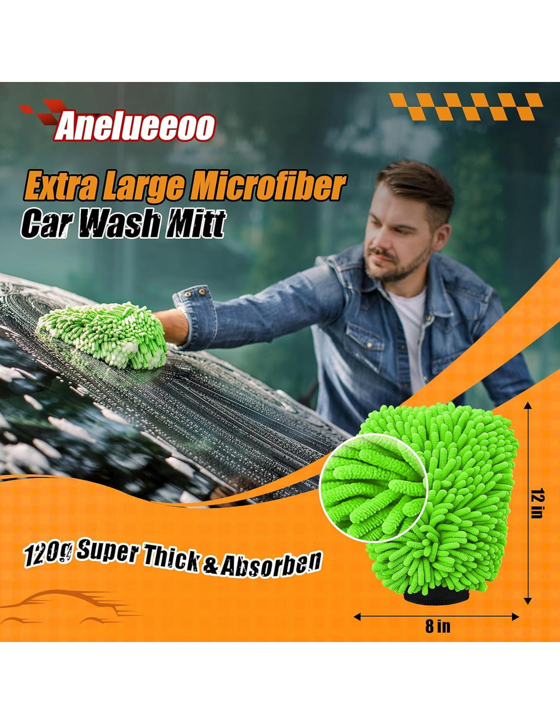 - Mitón de Lavado de Microfibra de 20.32cm x 30.48cm: Tamaño generoso que cubre más área por pasada, acelerando el lavado de autos en un 30% en comparación con mitones estándar. Peso pesado de 120g asegura durabilidad y retención óptima de jabón. Se adapta cómodamente a todos los tamaños de manos mientras alcanza lugares difíciles como ruedas y parachoques de manera eficiente.