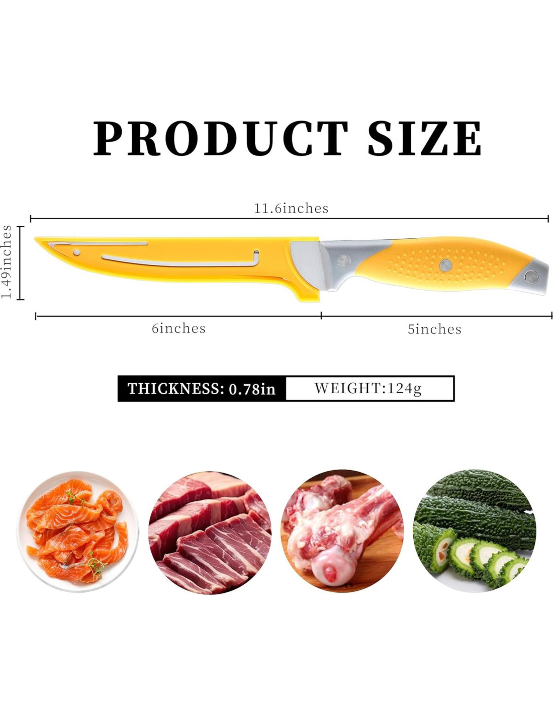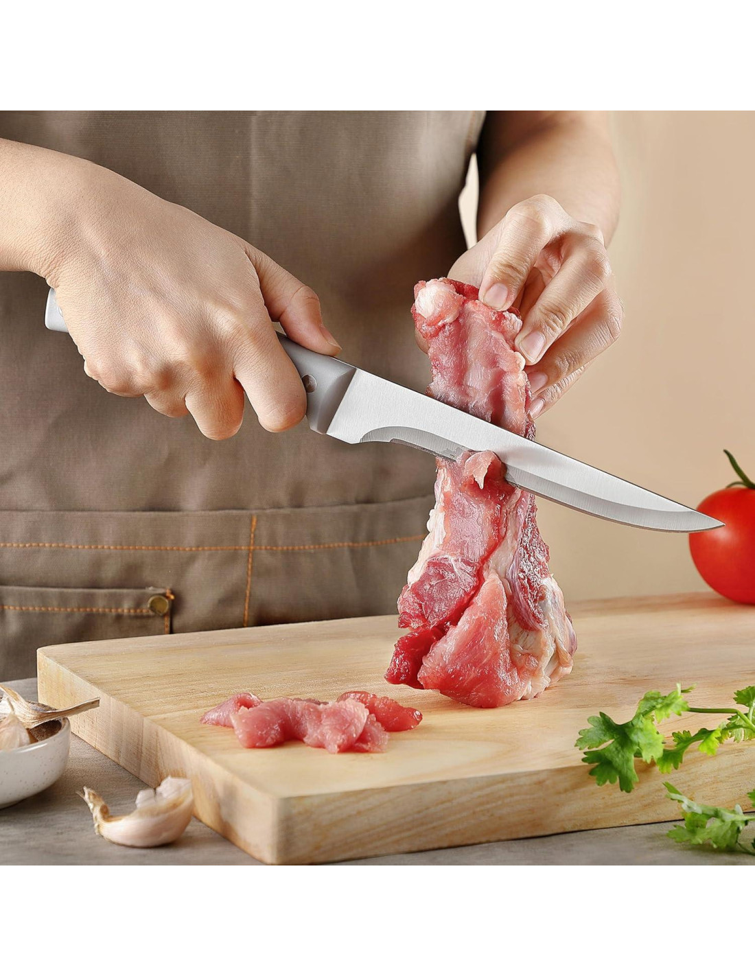 - 5. Duraderos y Fáciles de Mantener para un Rendimiento a Largo Plazo: Fabricados con acero alemán de alta calidad y equipados con mangos de PP resistentes, estos cuchillos deshuesadores están hechos para durar. Las hojas son fáciles de limpiar y mantener, asegurando que permanezcan afiladas y confiables durante años. El diseño de bajo mantenimiento los convierte en una opción práctica para cocinas ocupadas.