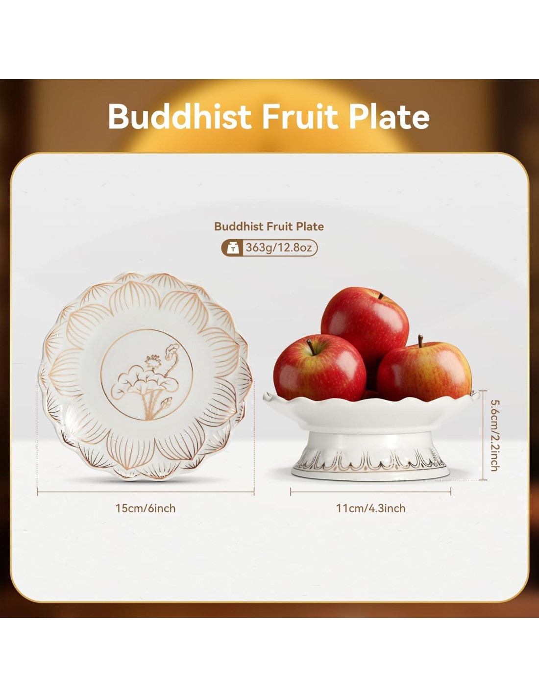 - Kit Completo de Ofrenda para Altar Budista: El conjunto todo en uno incluye 3 tazas de agua sagrada, 2 platos de frutas y 1 quemador de incienso; perfecto para establecer un espacio de adoración al Buda completo y respetuoso sin compras adicionales