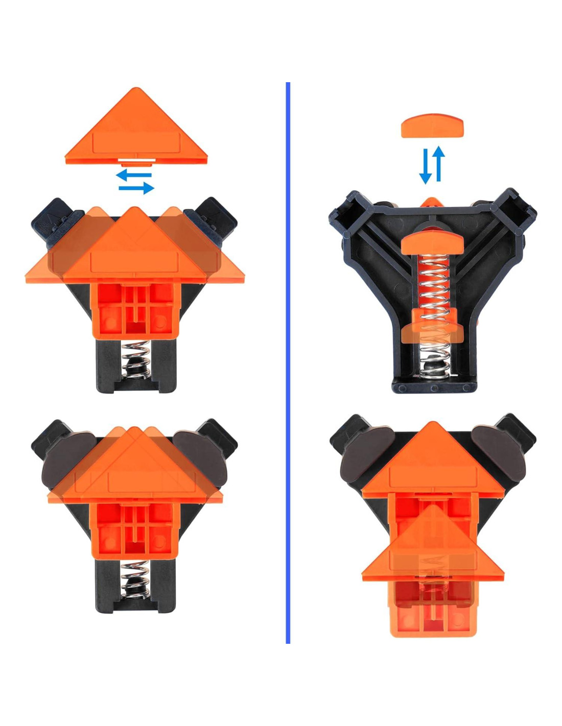 - Grandes regalos para carpinteros. Un juego de 4 abrazaderas de esquina es perfecto para alinear, clavar, trabajar la madera, soldar, atornillar, hacer pequeños armarios, cajas, refuerzo de imágenes y proyectos de bricolaje.