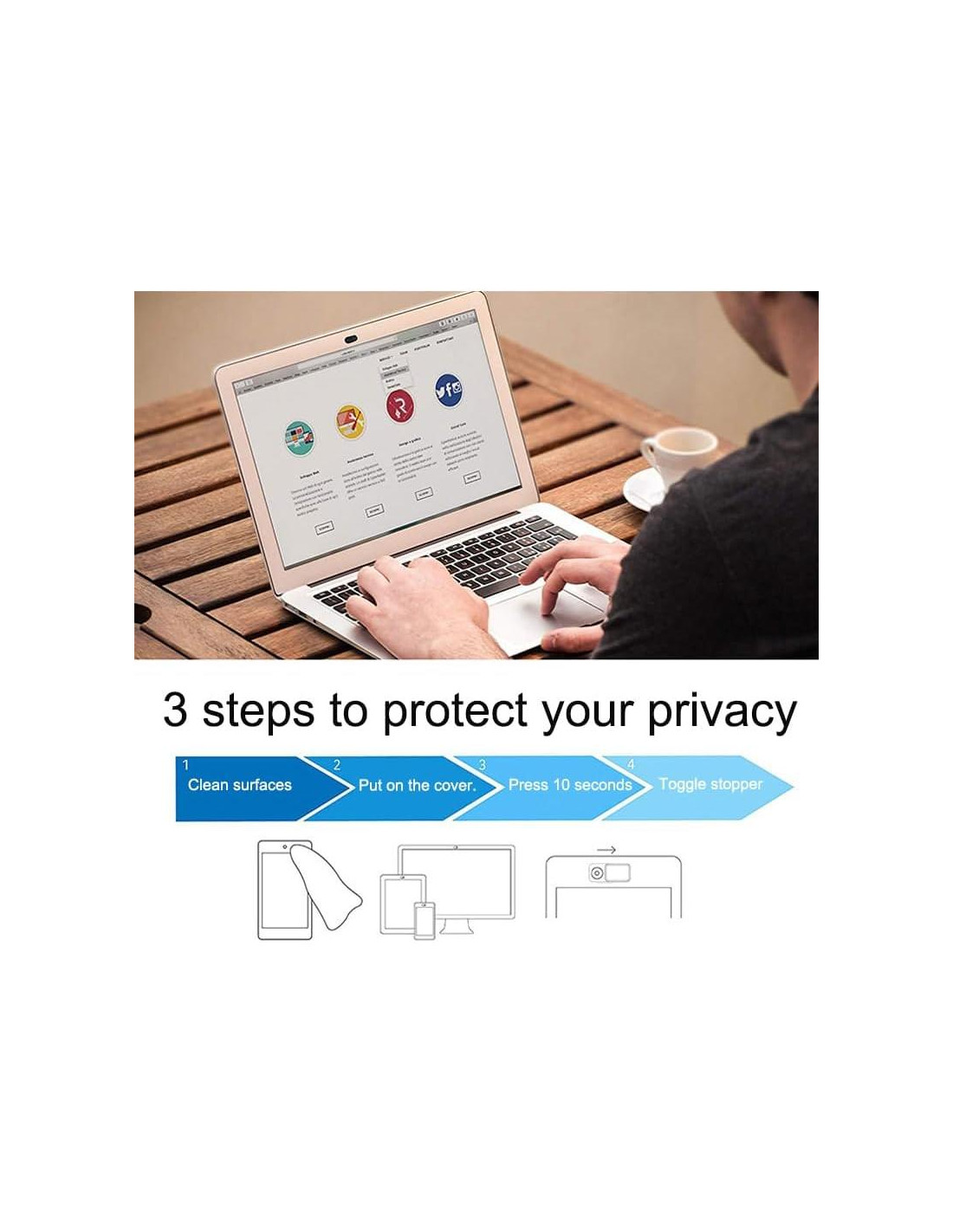- Simplifique su protección de privacidad en 4 pasos sencillos: Limpie, aplique adhesivo, alinee con la lente de la cámara, mantenga durante 10 segundos y deslice para cerrar; Nota: No apto para dispositivos con pantalla completa o película templada con muesca