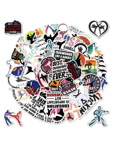 - Único y Versátil: Nuestras Calcomanías de Taekwondo son imprescindibles para cualquier entusiasta de las artes marciales. Con 50 diseños únicos, cada calcomanía muestra la belleza y fuerza del Taekwondo. Desde laptops hasta botellas de agua, tazas hasta equipaje, guitarras hasta patinetas, estas calcomanías pueden adornar cualquier superficie lisa, permitiéndote expresar tu pasión dondequiera que vayas.