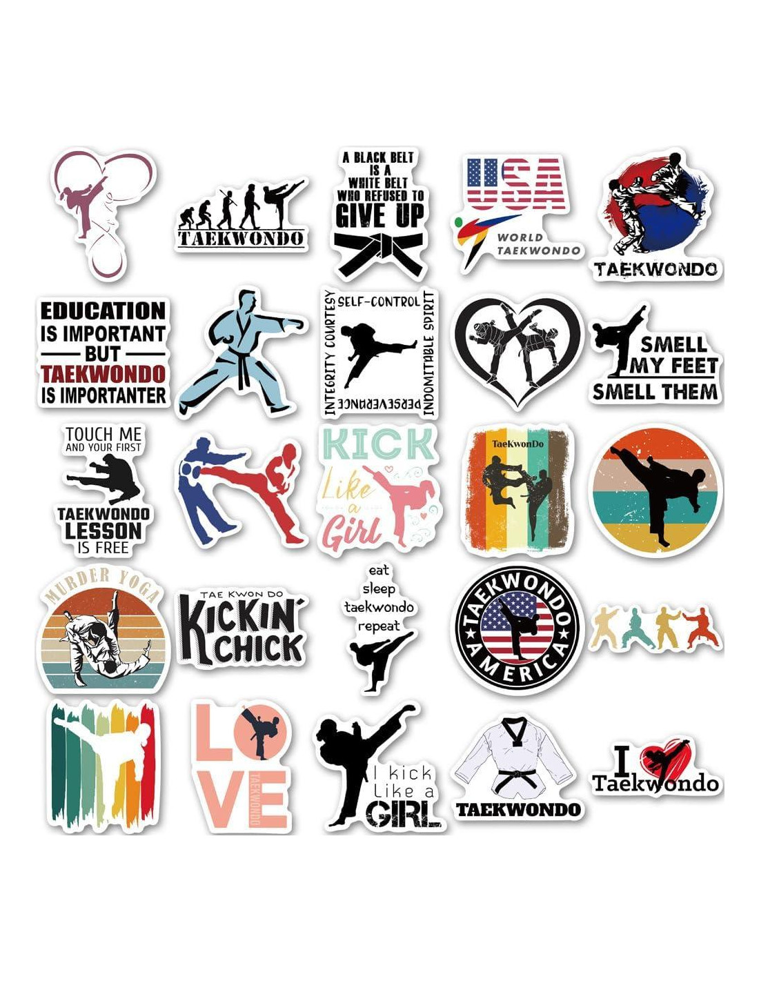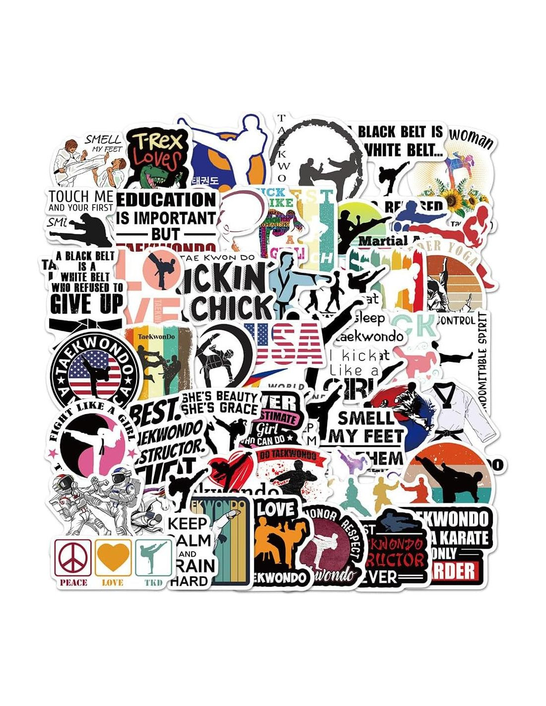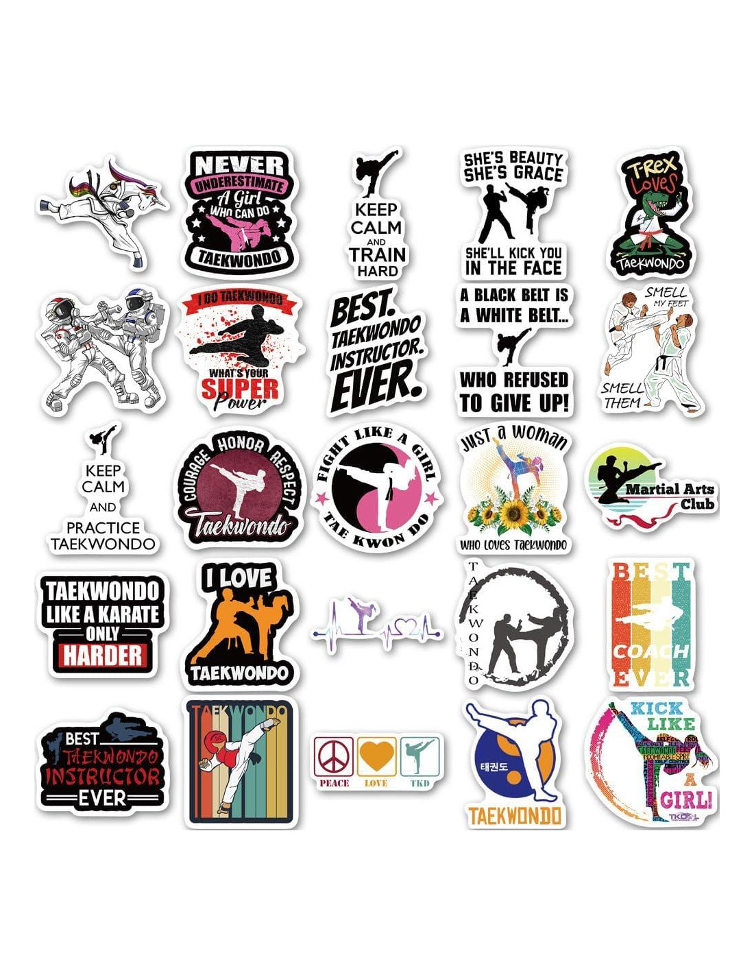 Calcomanías de Taekwondo, 50 Pcs Calcomanías de Artes Marciales de Cinturón Negro de Taekwondo para Autoprotección para Laptop, Botella de Agua, Taza, Equipaje, Guitarra, Patineta, Casco, Decoración de Suministros para Fiestas