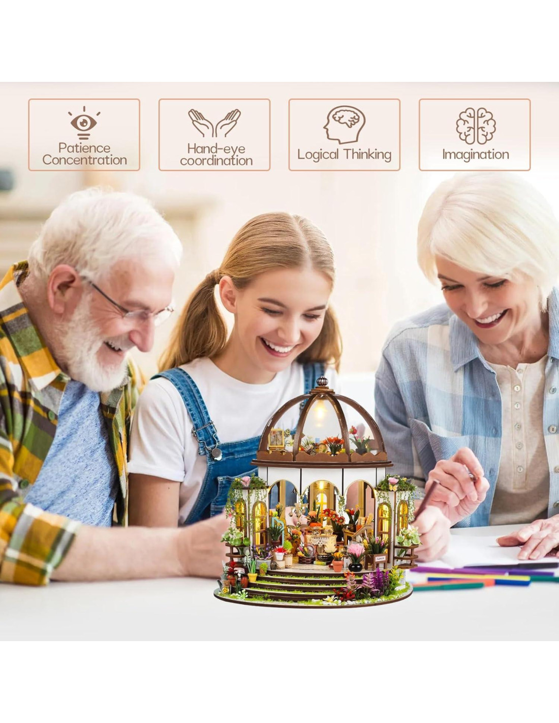 - Tiempo de Ocio en Manualidades: Abre un mundo completamente nuevo de modelado de manualidades para tus amigos o familiares. La Casa de Muñecas en Miniatura ayuda a los niños de 14 años en adelante a desarrollar la coordinación mano-ojo, concentración, atención y comprensión de las relaciones espaciales. No es apto para niños menores de tres años.