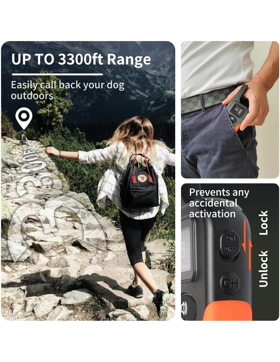 - El diseño de Bloqueo de Seguridad previene cualquier activación accidental ya sea que el control remoto esté en tu bolsillo o en tu mano, eliminando sustos repentinos para tus amigos peludos. El diseño de silicona en el lado del control remoto proporciona un agarre antideslizante y comodidad. Viene con una banda de muñeca para portabilidad y entrenamiento.