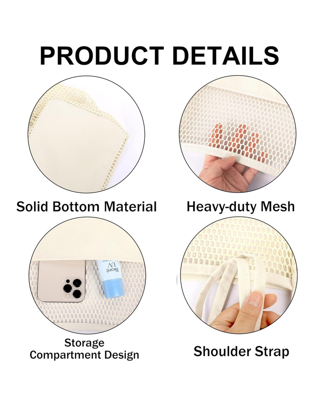 - Buen Material: La bolsa de playa de malla está hecha de material de poliéster sólido, duradero, resistente a la tracción y al desgaste, puede extender la vida útil.