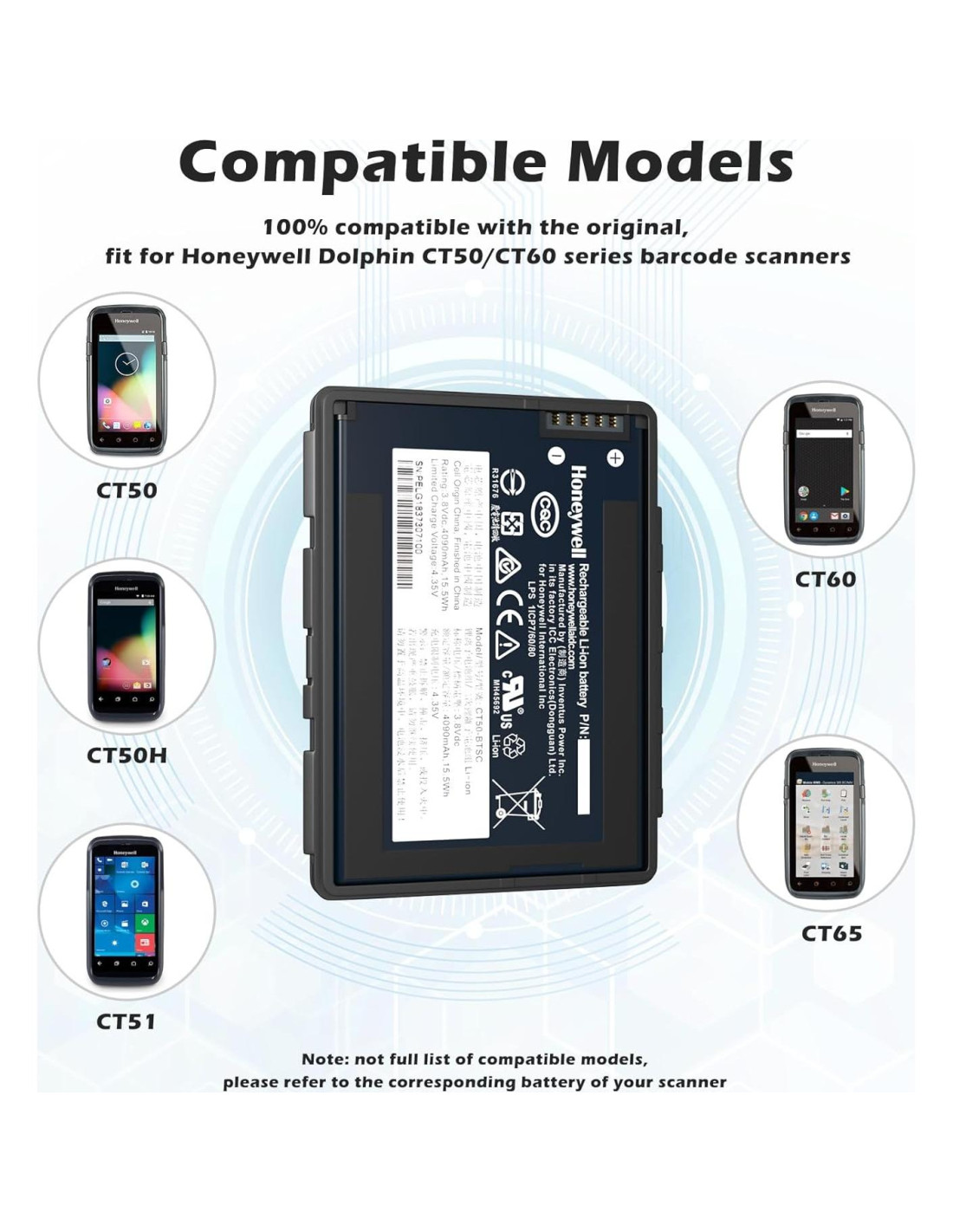 - Amplia Compatibilidad de Dispositivos: Diseñada para Honeywell para Dolphin CT50 / CT50h / CT51 / CT60 / CT65 Escáner de Código de Barras de Mano, esta batería de reemplazo asegura un rendimiento óptimo.