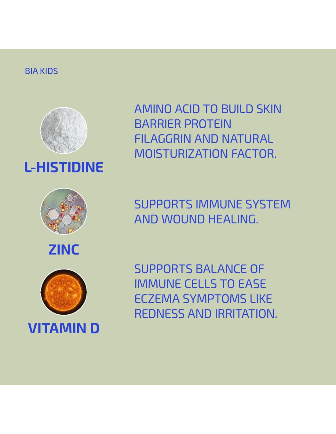 - SOPORTE DE BARRERA CUTÁNEA - Formulado con L-Histidina, un aminoácido esencial que ayuda a fortalecer y proteger la barrera cutánea de su hijo desde adentro, reduciendo la sequedad, la irritación y la sensibilidad.
