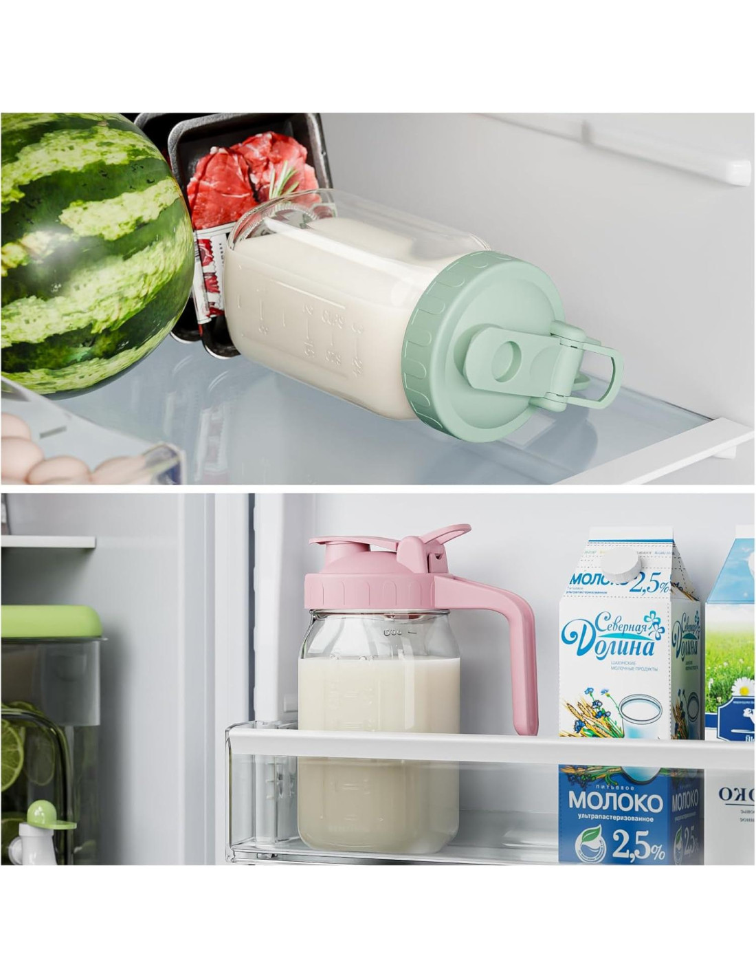 - [Diseño Humanizado] - El diseño ergonómico de la asa resistente puede soportar el peso de una jarra llena, no es necesario tocar las jarras frías. Tapa de vertido fácil, la preparación, el vertido y el almacenamiento en el refrigerador son convenientes, tiene marcas de volumen para un control preciso de la ingesta