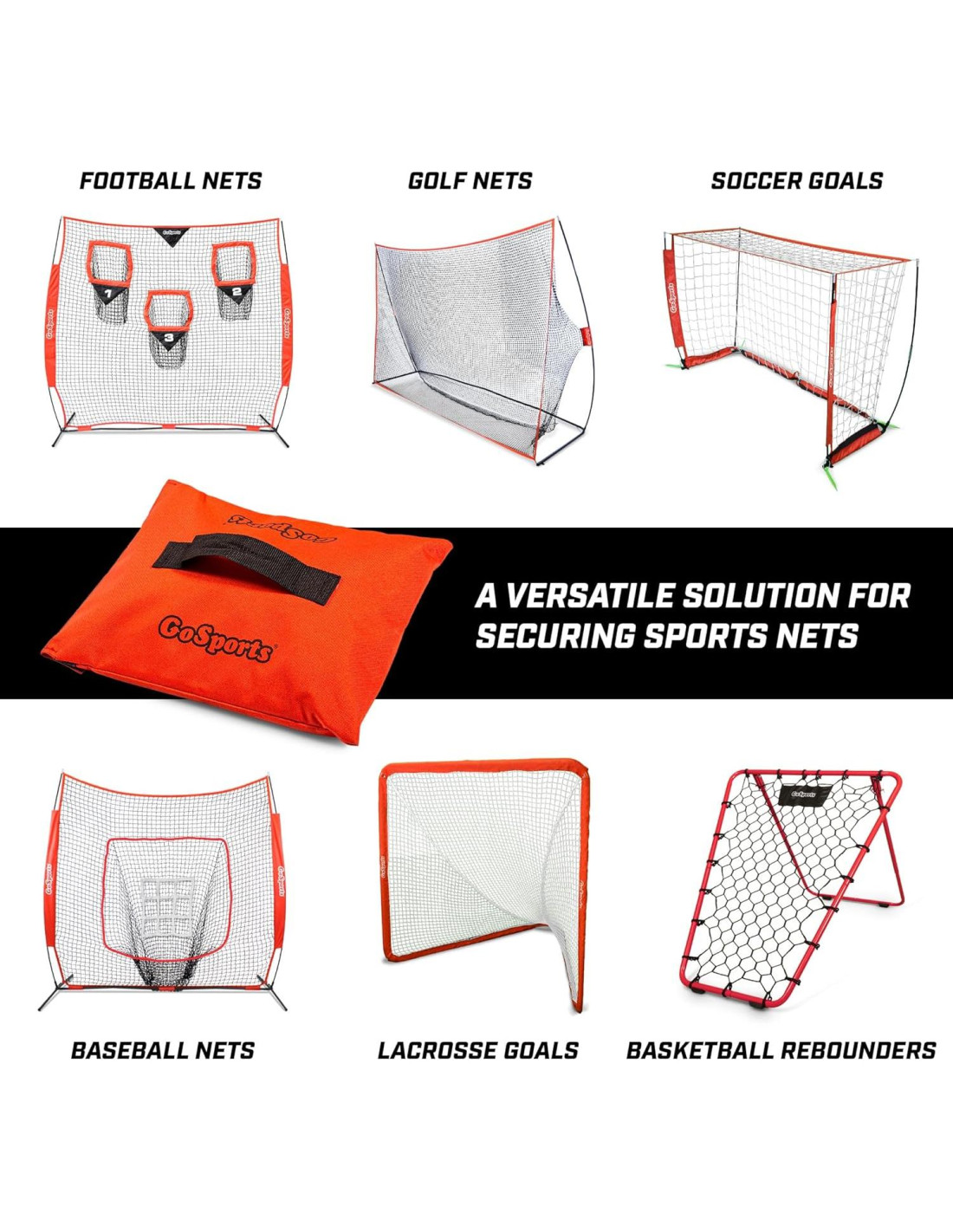 Las bolsas de arena GoSports proporcionan una solución versátil para agregar peso y estabilidad a una variedad de redes de entrenamiento deportivo para asegurarlas en su lugar durante los ejercicios de entrenamiento. El conjunto incluye 4 bolsas de arena (arena no incluida) que son fáciles de ensamblar y son ideales para: porterías de fútbol, redes de entrenamiento de fútbol americano, porterías de lacrosse, redes de golpeo de golf, redes de lanzamiento de béisbol, reboteadores deportivos y más. Las bolsas de arena están construidas de lona resistente y cada bolsa sostiene de 3.6 a 4.5 kg de arena que se puede comprar a bajo costo en la mayoría de las ferreterías. Las bolsas de arena se pueden sujetar de manera segura a cualquier marco de red deportiva utilizando las correas inferiores que proporcionan un anclaje más seguro en comparación con las bolsas de arena tradicionales. Cualquiera que sea tu deporte, ahora puedes practicar a toda fuerza con las bolsas de arena GoSports.