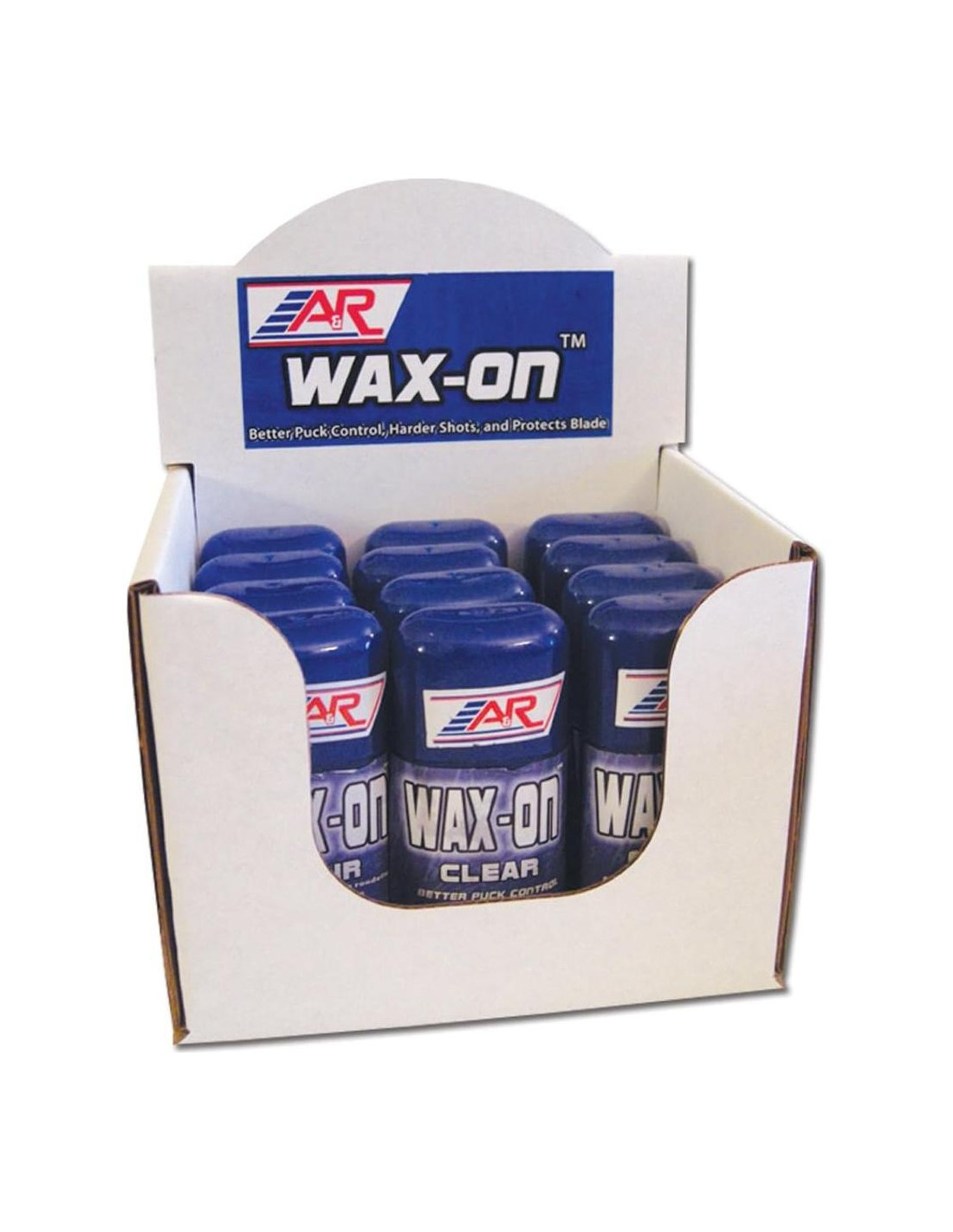 La Cera Wax-On de A&R es una nueva fórmula más suave que permite una aplicación abundante. Wax-On protege las hojas, mejora el control del puck y permite tiros más potentes. La Cera Negra Wax-On convierte la cinta blanca del palo en negra para hacer que el puck sea más difícil de ver y robar.