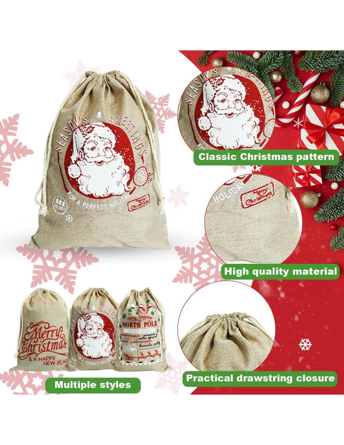 - REUTILIZABLE - A diferencia del papel de regalo, las bolsas de regalo con cierre de cuerda son reutilizables y lo suficientemente duraderas para un uso prolongado. Puedes usarlas después de la temporada navideña.