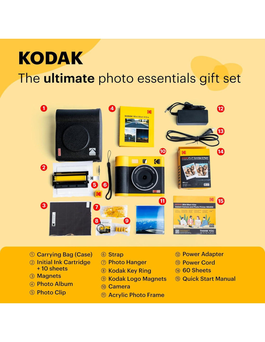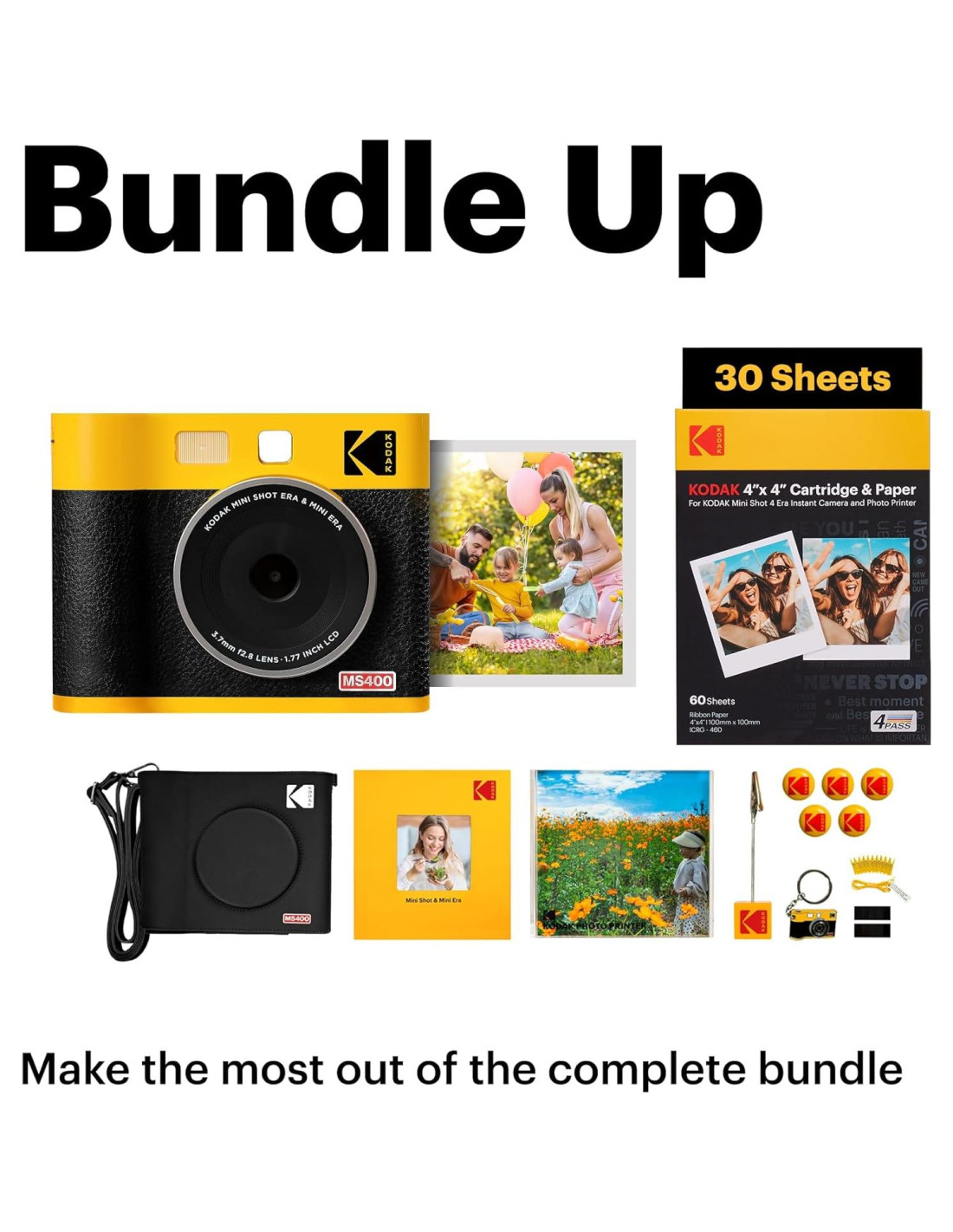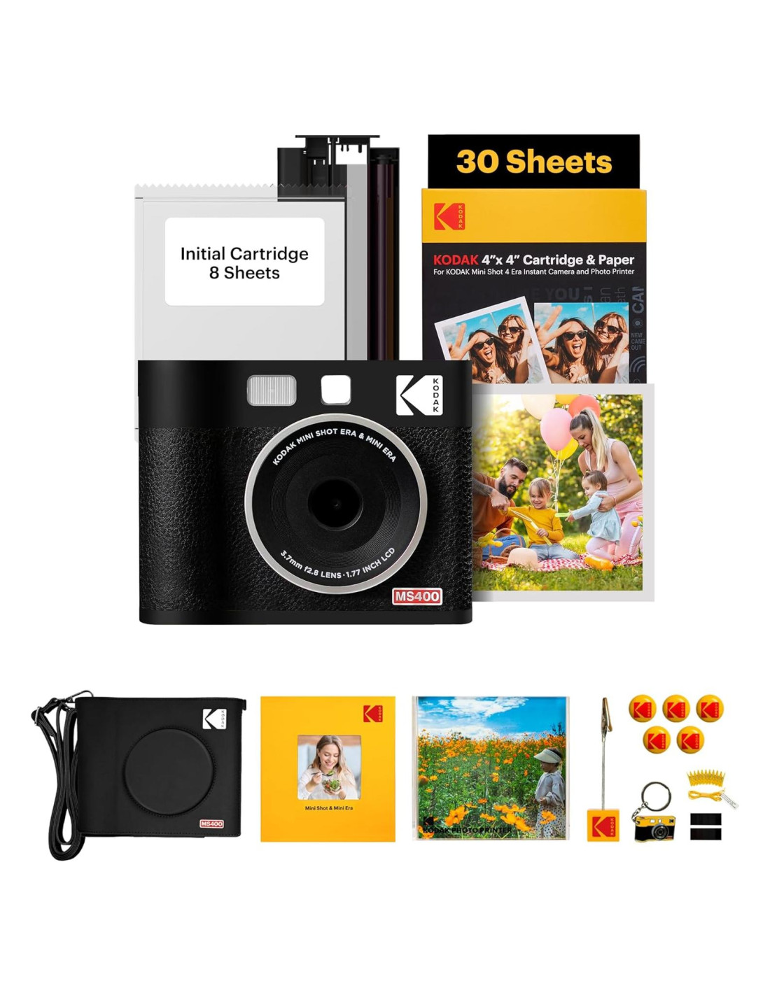 - [Cámara Instantánea + Impresora de Fotos] La Kodak Mini Shot 4 ERA es tu combinación todo-en-uno de cámara instantánea e impresora de fotos. Imprime y cancela tus imágenes al instante. Conéctate e imprime directamente desde la galería de tu dispositivo móvil a través de Bluetooth, compatible con Apple iPhone, iPad y dispositivos Android.