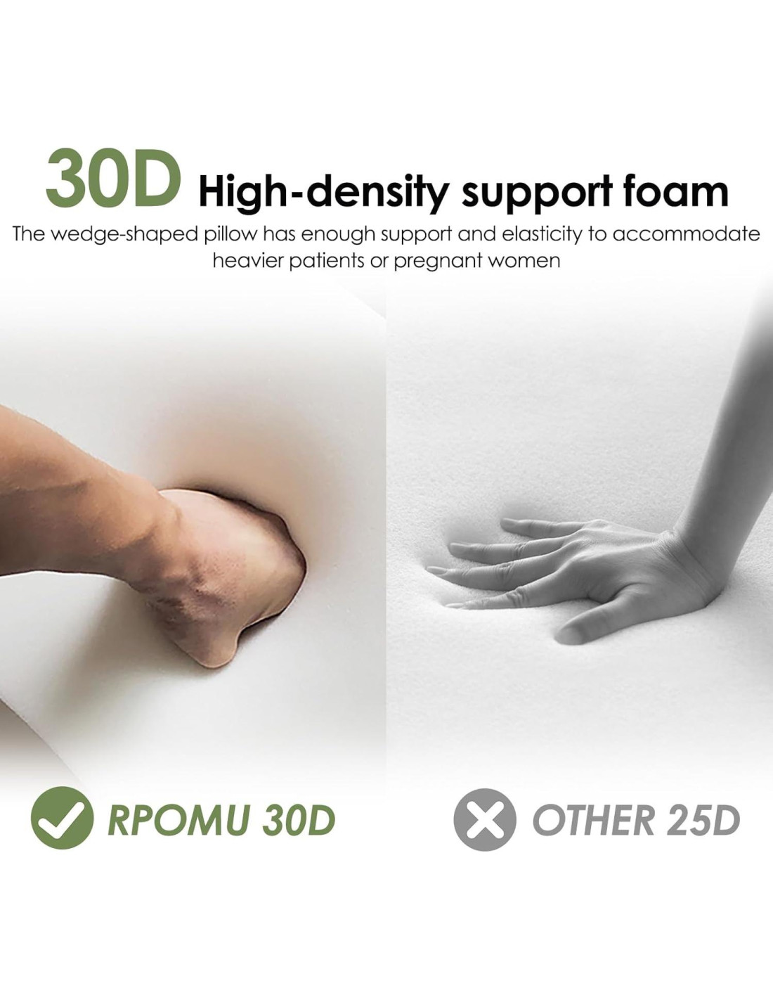- El set incluye: 2 almohadas de posicionamiento, una almohada de forma triangular que mide 20 inches (50,8 cm) en su lado más largo, disponible en ángulos de 36, 40, 90 y 100. Hecha de espuma de alta calidad con una funda de algodón premium que es fácil de limpiar y mantener.